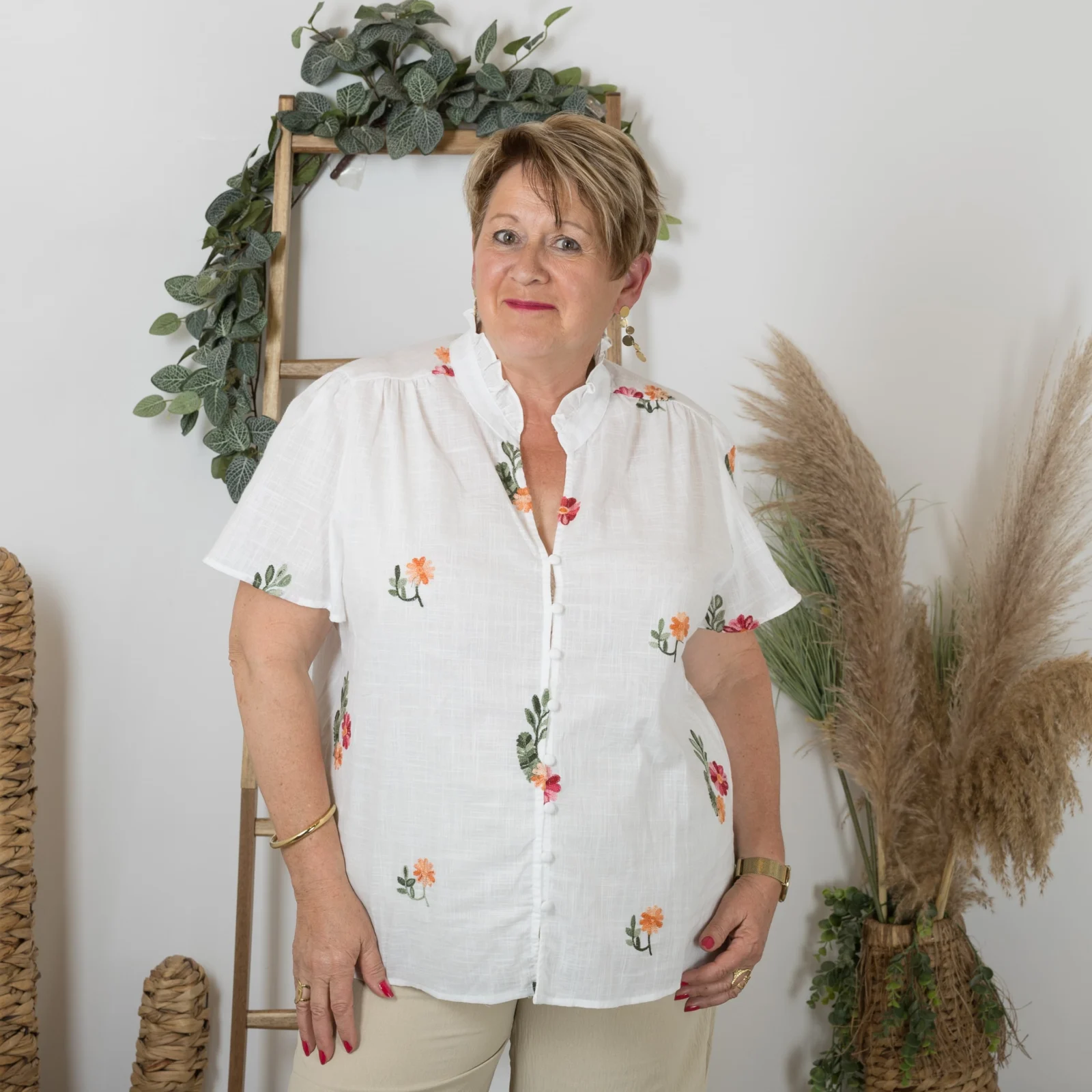 Modèle de blouse proposée en 5 tailles. Sur ce modèle, nous vous conseillons de choisir votre taille habituelle.
