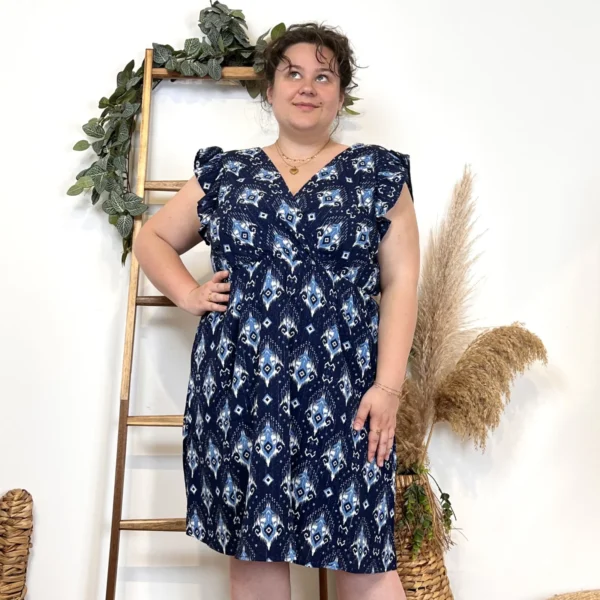 Robe courte imprimée “Feuilles”, facile à associer sous un gilet ou une veste perfecto..
