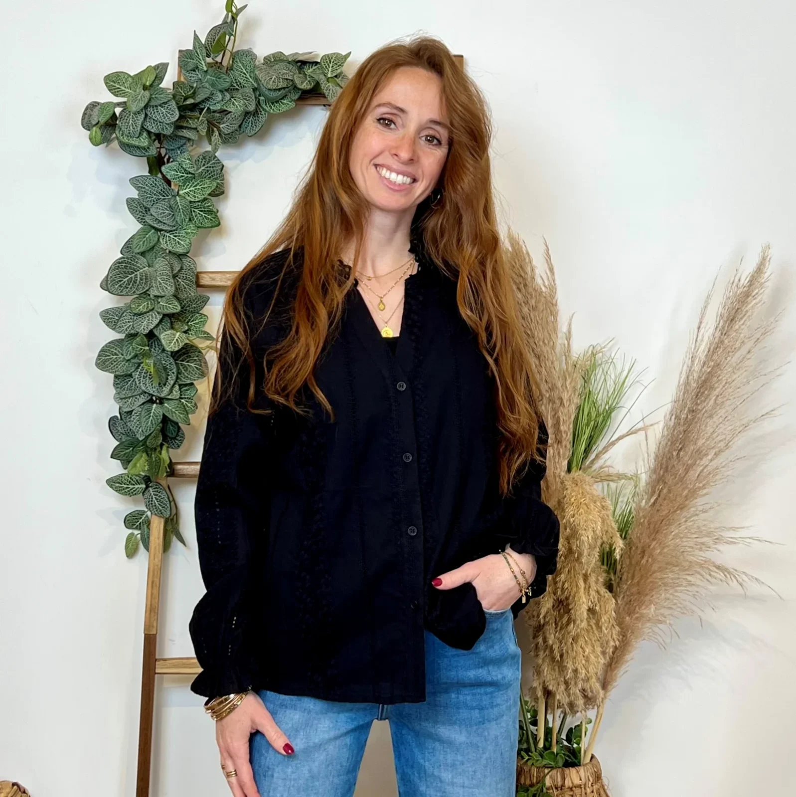 Accompagné d’un gilet ou d’un jean voggo, ce chemisier sera votre alliée idéal !