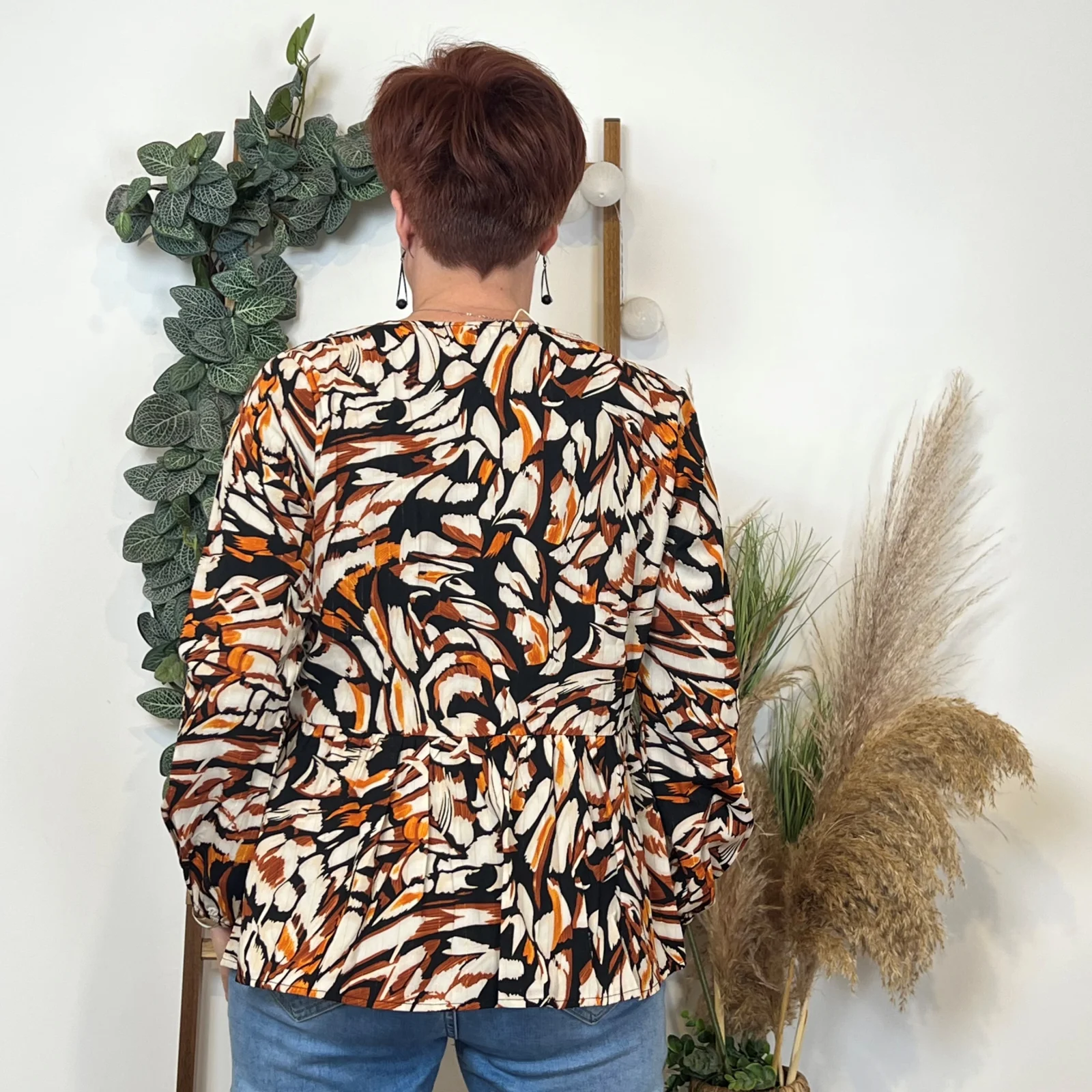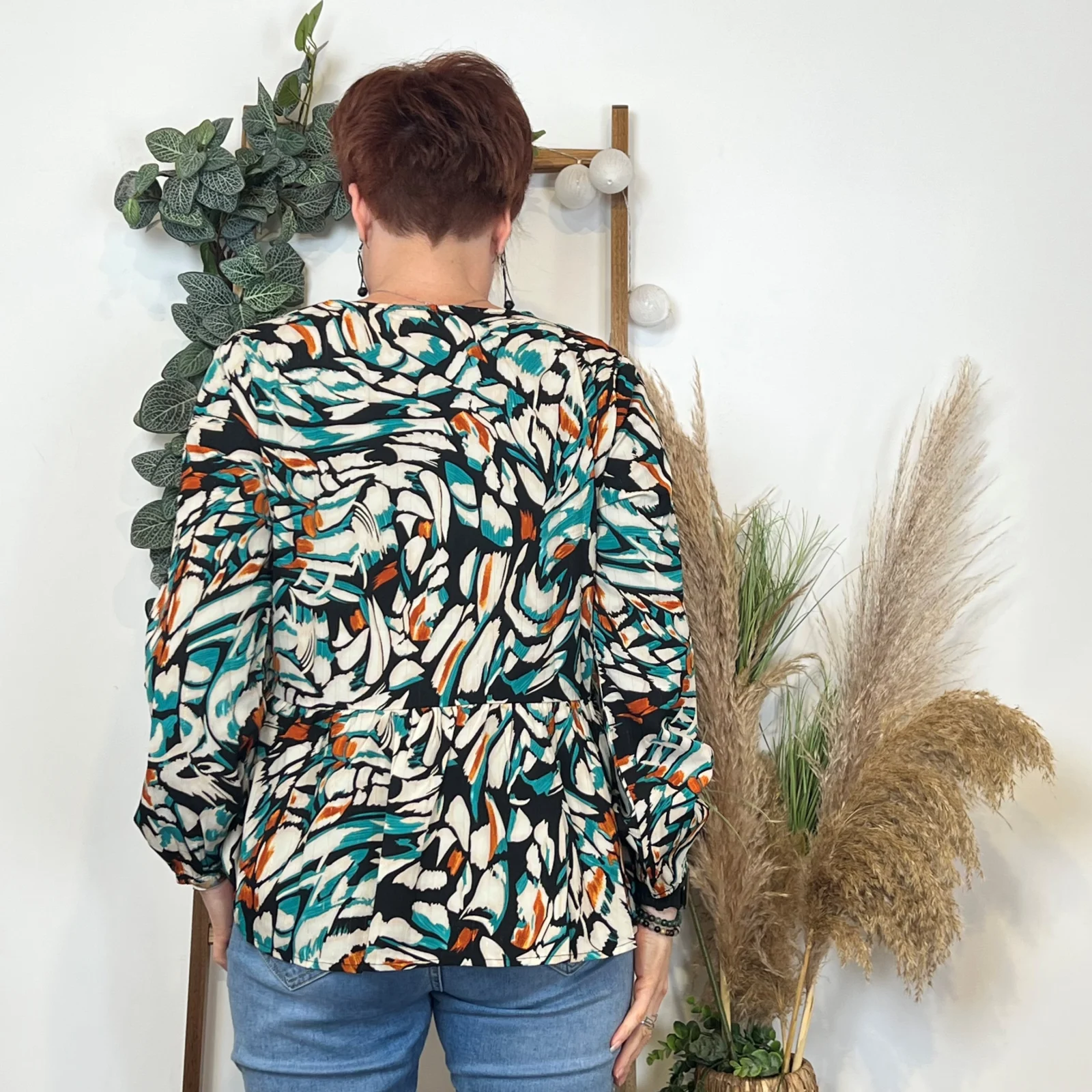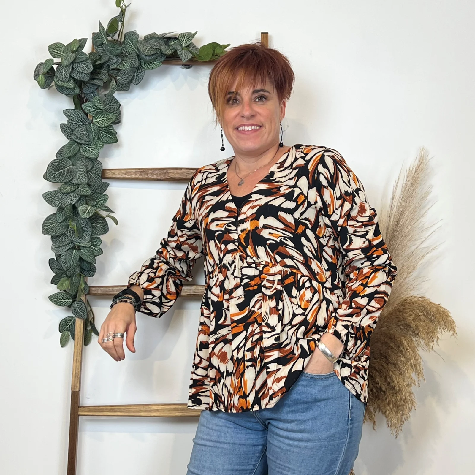 Blouse à l’imprimé marbréproposée du 40 au 48, nous vous conseillons de choisir cette blouse dans votre taille habituelle.