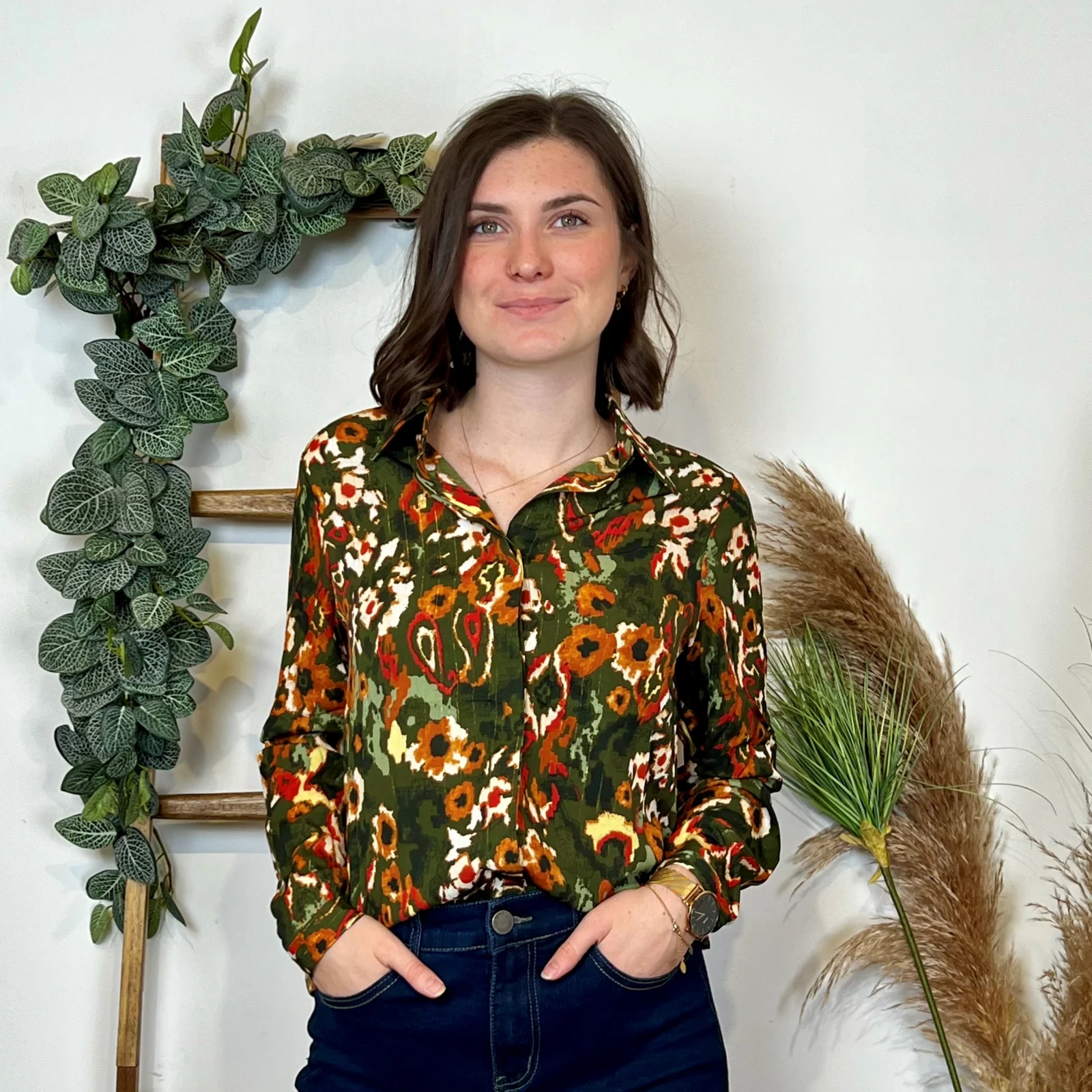Accompagnée d’un gilet ou d’un Jean voggo, cette blousesera votre alliée idéal ! Imprimé manches longues.