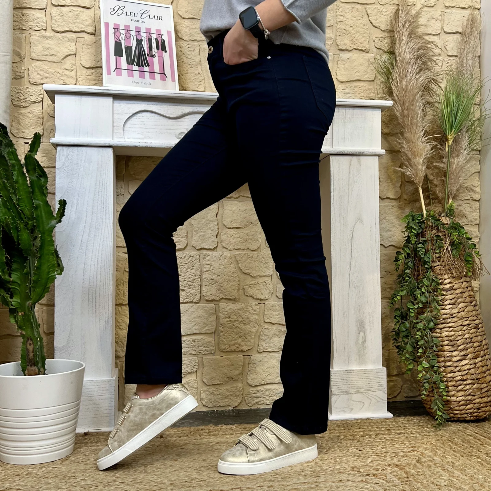 Ce jean droit signé Voggo est un essentiel qui reprend sa place dans notre armoire. Polyvalente, cette coupe s’adapte à tous les styles et à toutes les tenues. Ni trop large, ni trop près du corps, sa coupe allonge la jambe et flatte toutes les morphologies. 5 poches , il est doté de deux poches fendues sur le devant et de deux poches plaquées à l’arrière. Fermeture Éclair et bouton. Taille semi-haute il est proposé du 36 au 44.