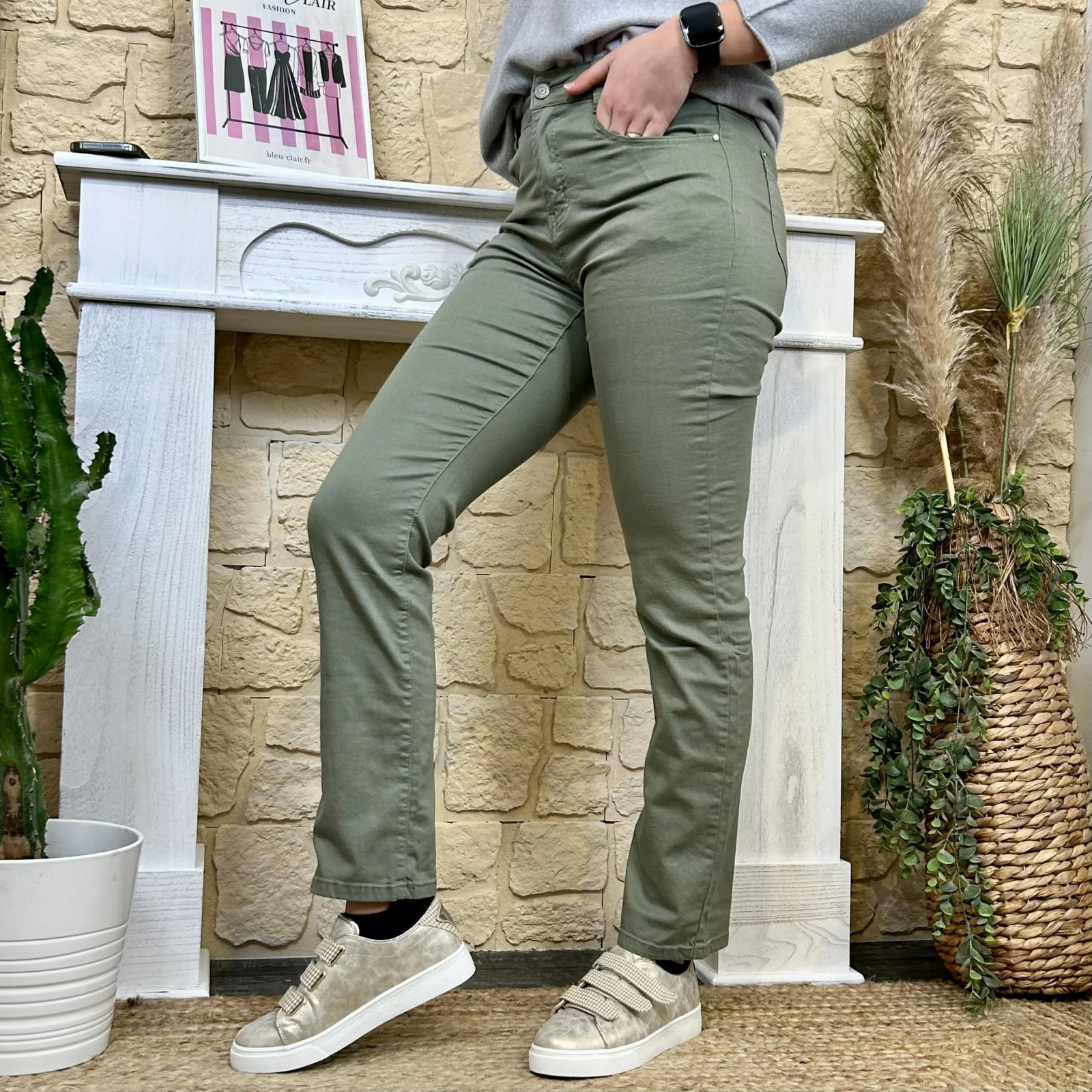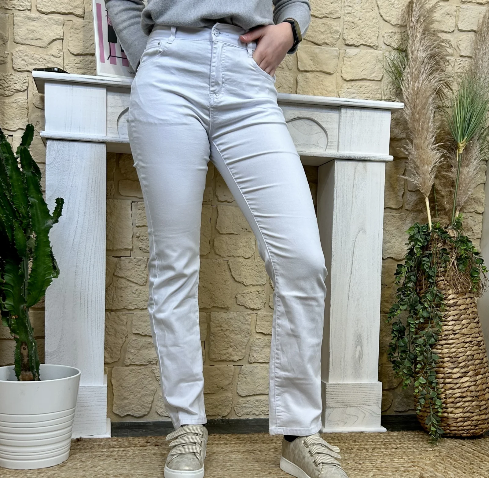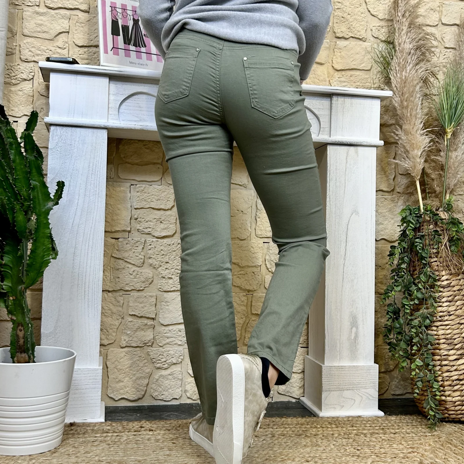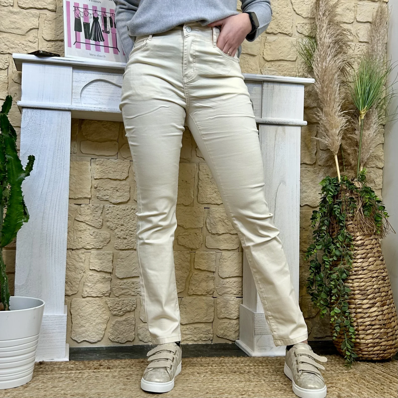 Sa coupe droite équilibre la jambe sans la mouler, flatte la morphologie et allonge visuellement la silhouette.