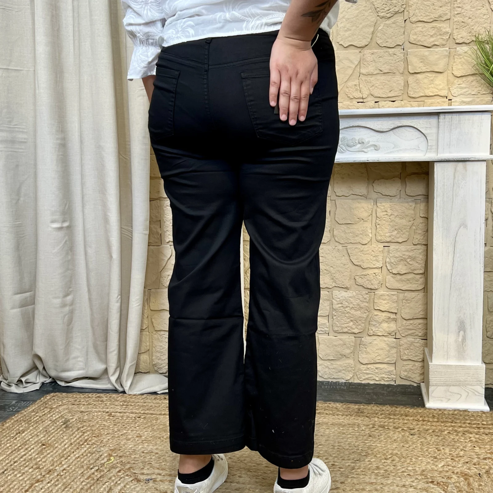Adopte un look tendance avec ce jean Wide Leg. Sa coupe est resserrée à la taille et élargie aux chevilles. Elle allonge la silhouette et ne colle pas au corps.