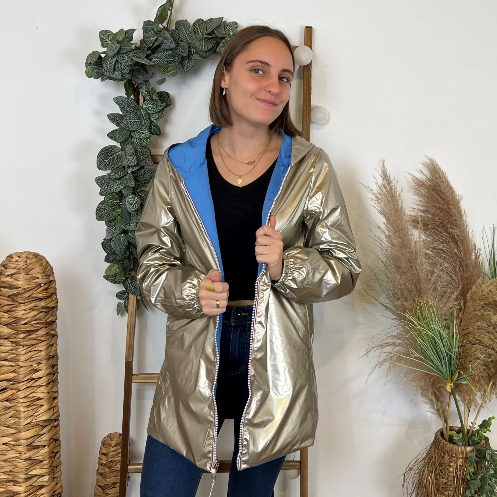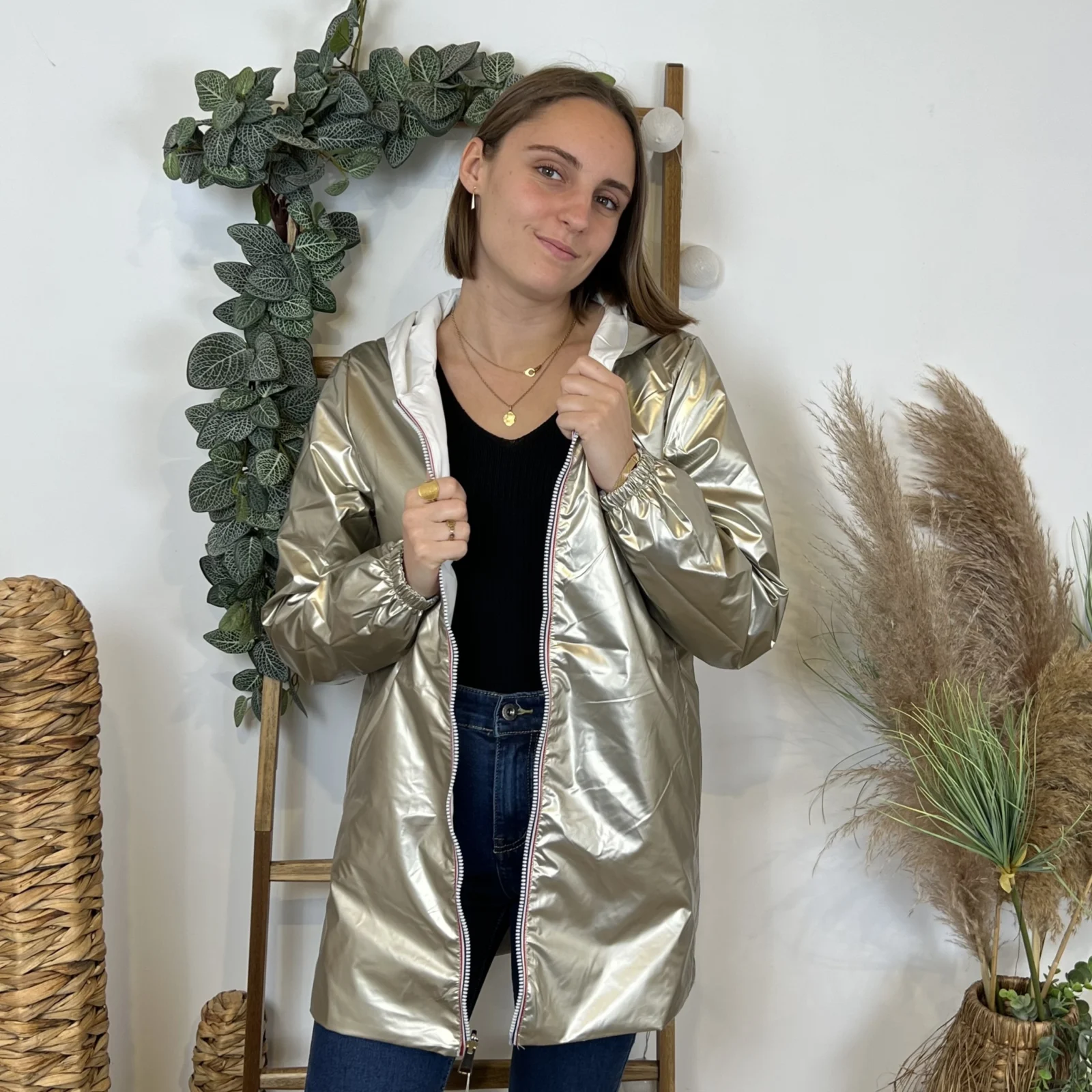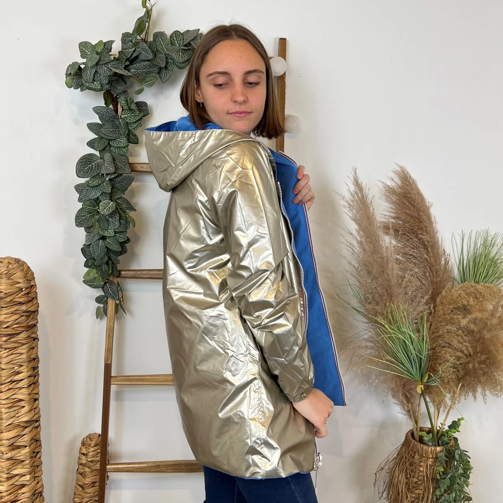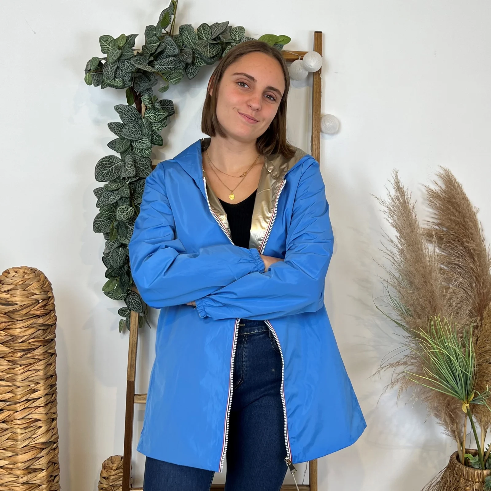 Voici un imperméables réversible griffé Melya avec capuche une veste de pluie qui peut faire face à toutes les conditions météorologiques. Si vous recherchez une veste de pluie légère et imperméable pour les activités de plein air, ce modèle est un excellent choix , facile à associer sur un jean Voggo.
