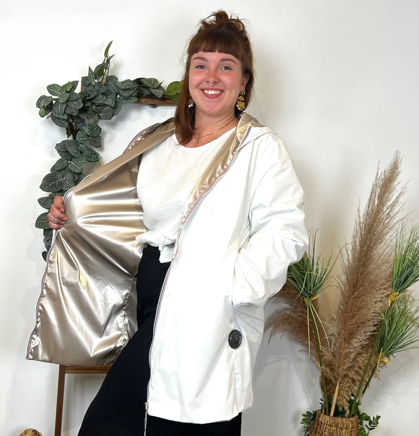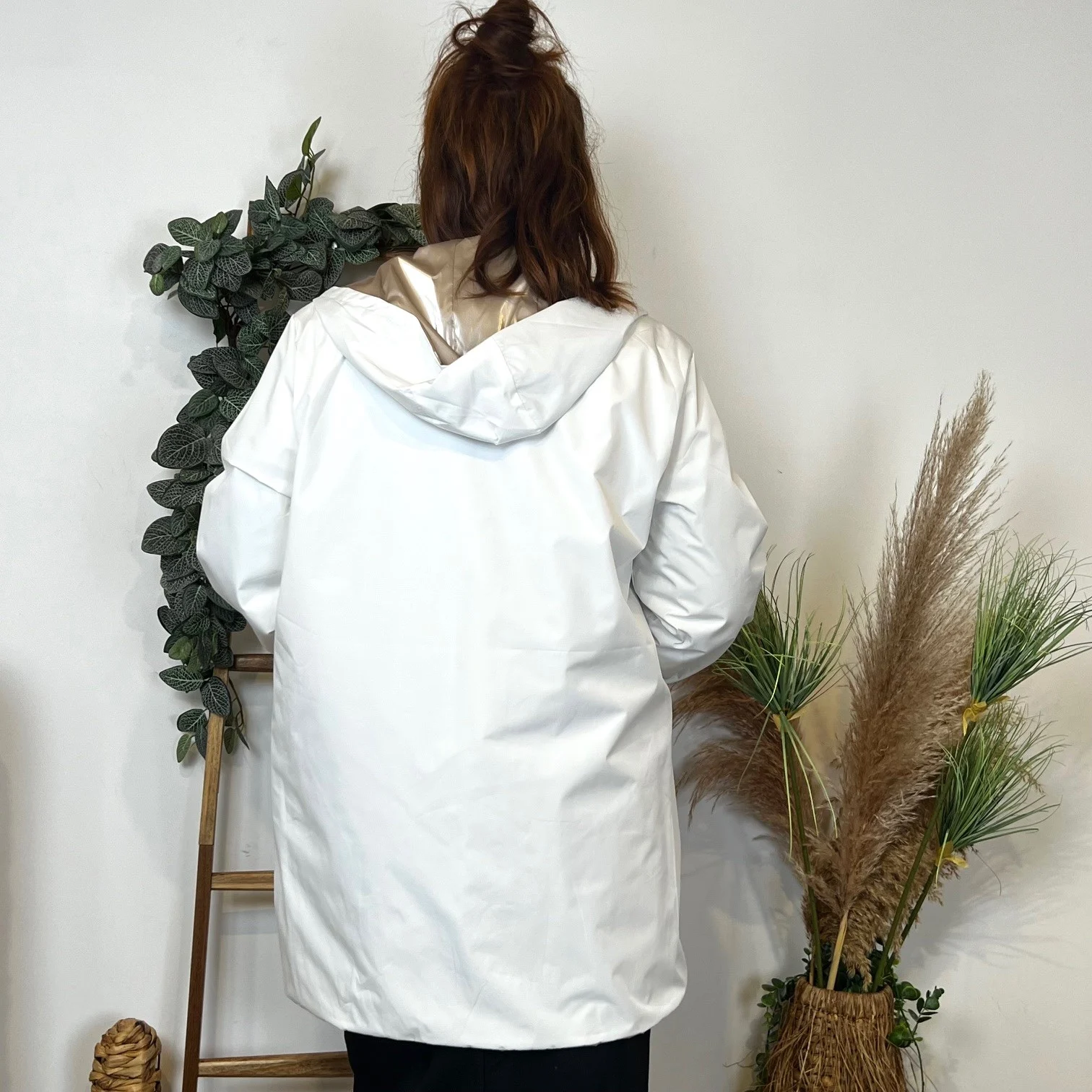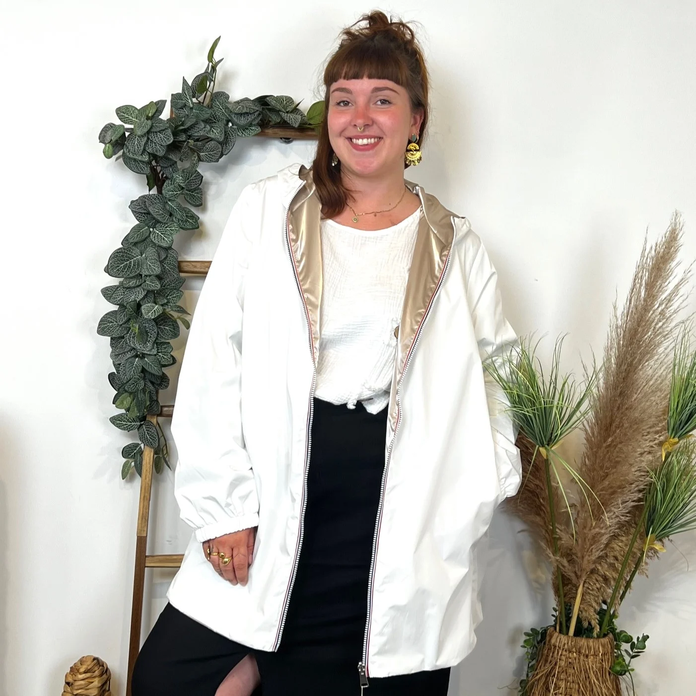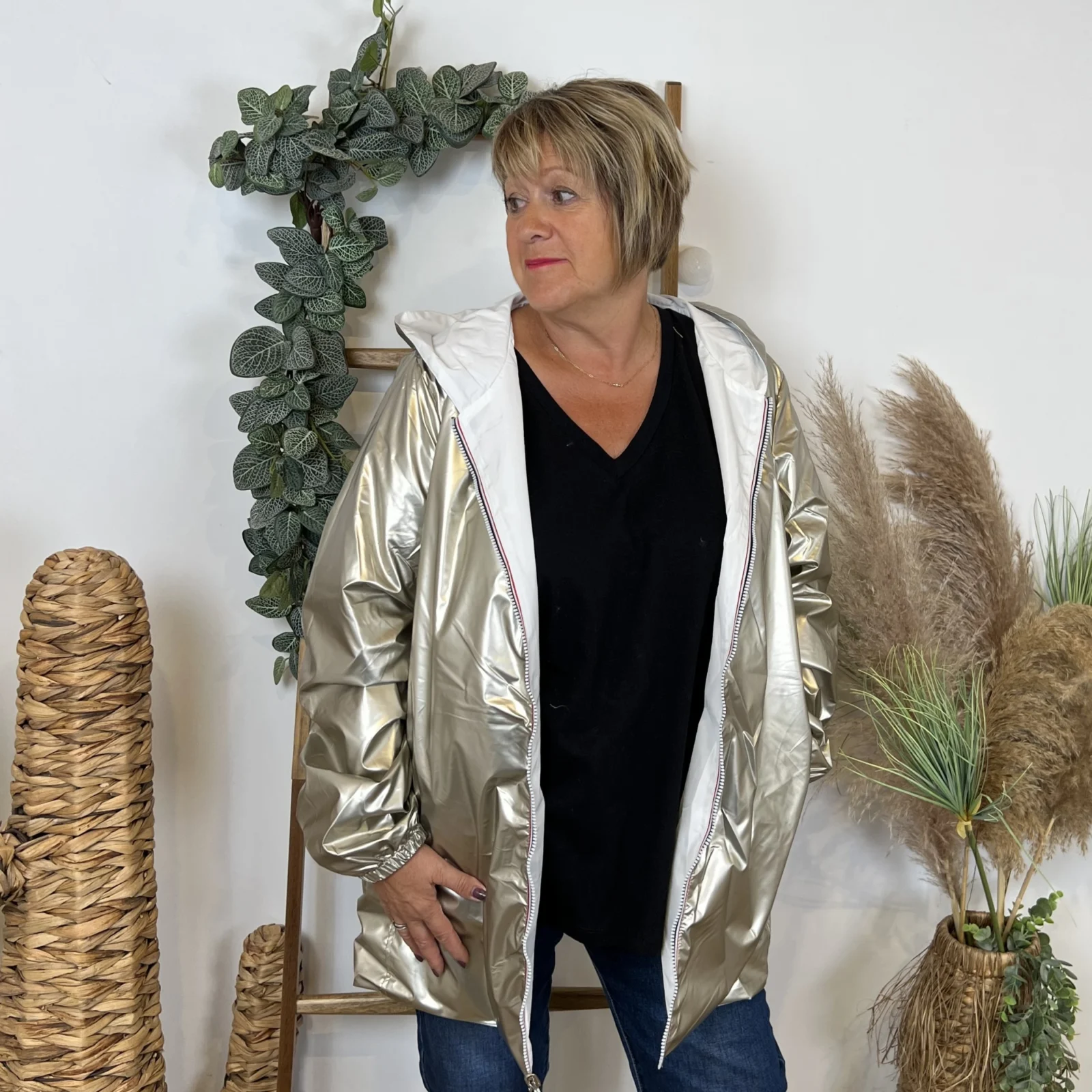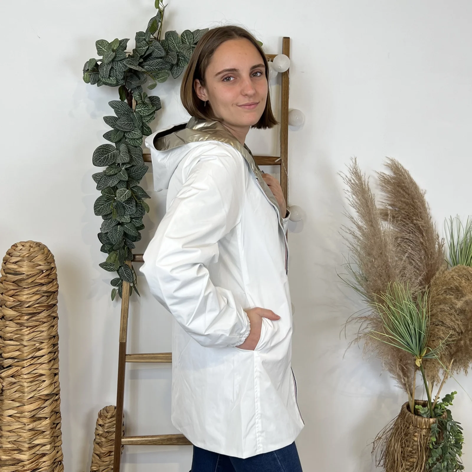 Voici un imperméables réversible griffé Melya avec capuche une veste de pluie qui peut faire face à toutes les conditions météorologiques. Si vous recherchez une veste de pluie légère et imperméable pour les activités de plein air, ce modèle est un excellent choix , facile à associer sur un jean Voggo.