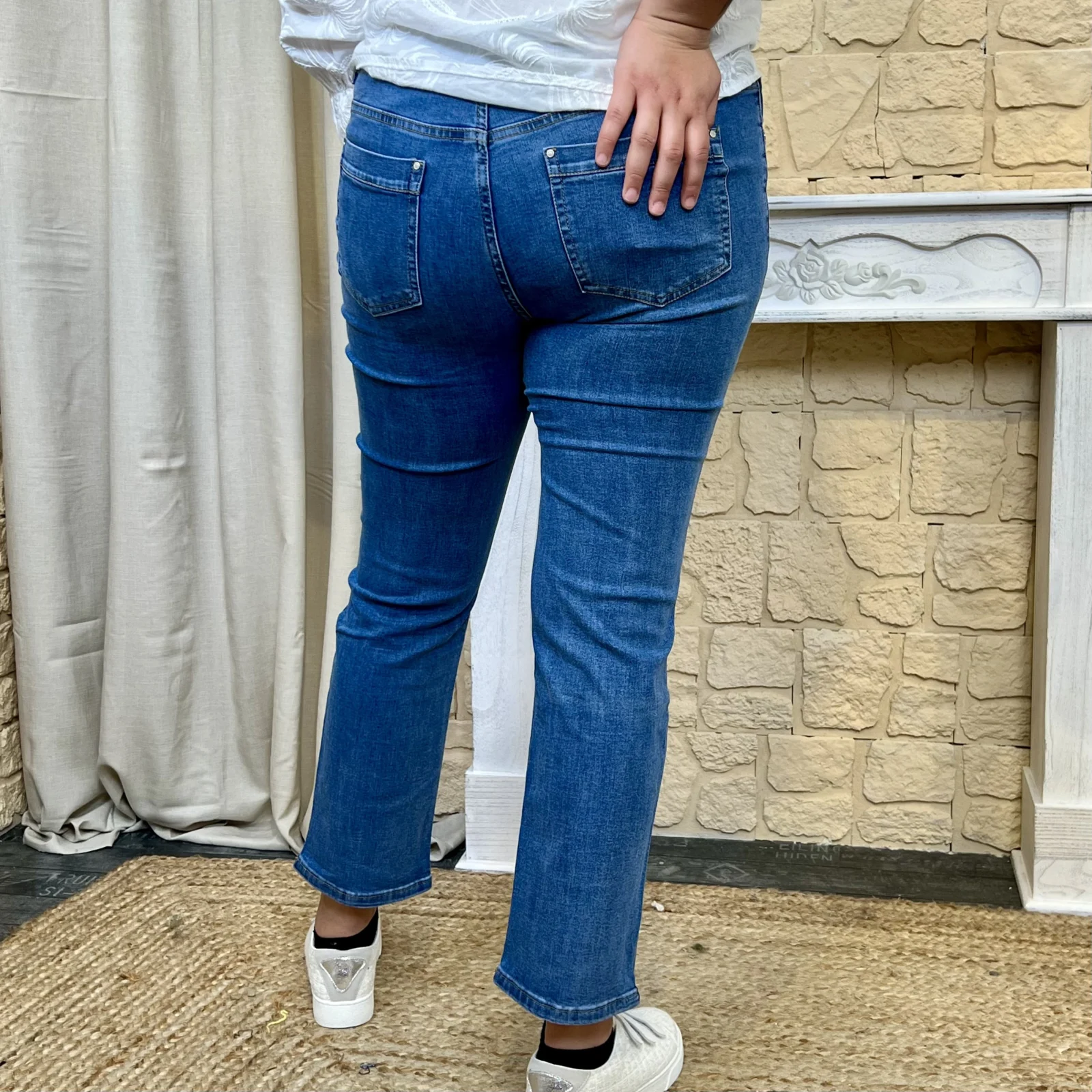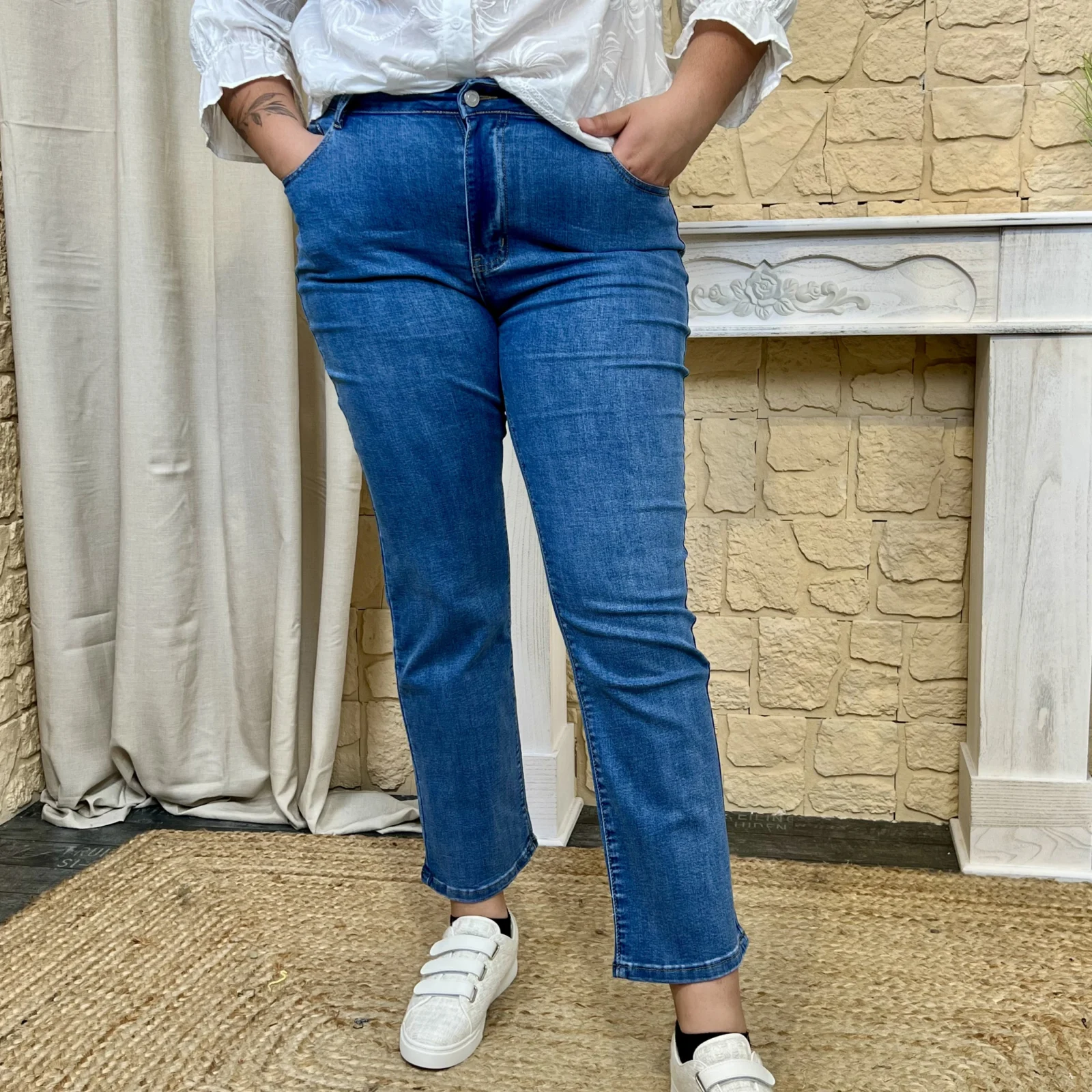 Sa taille haute affine la silhouette et souligne les formes, ce jean coupe droite doté de deux poches plaquées à l’avant et de deux poches à l’arrière, ce jean combine modernité et praticité.