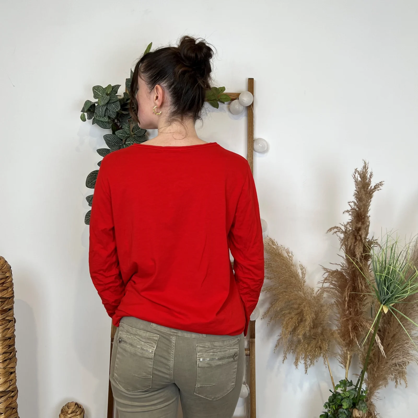 Les t-shirts à manches longues uni avec un col rond et une finition en biais sont parfaits pour une tenue décontractée.