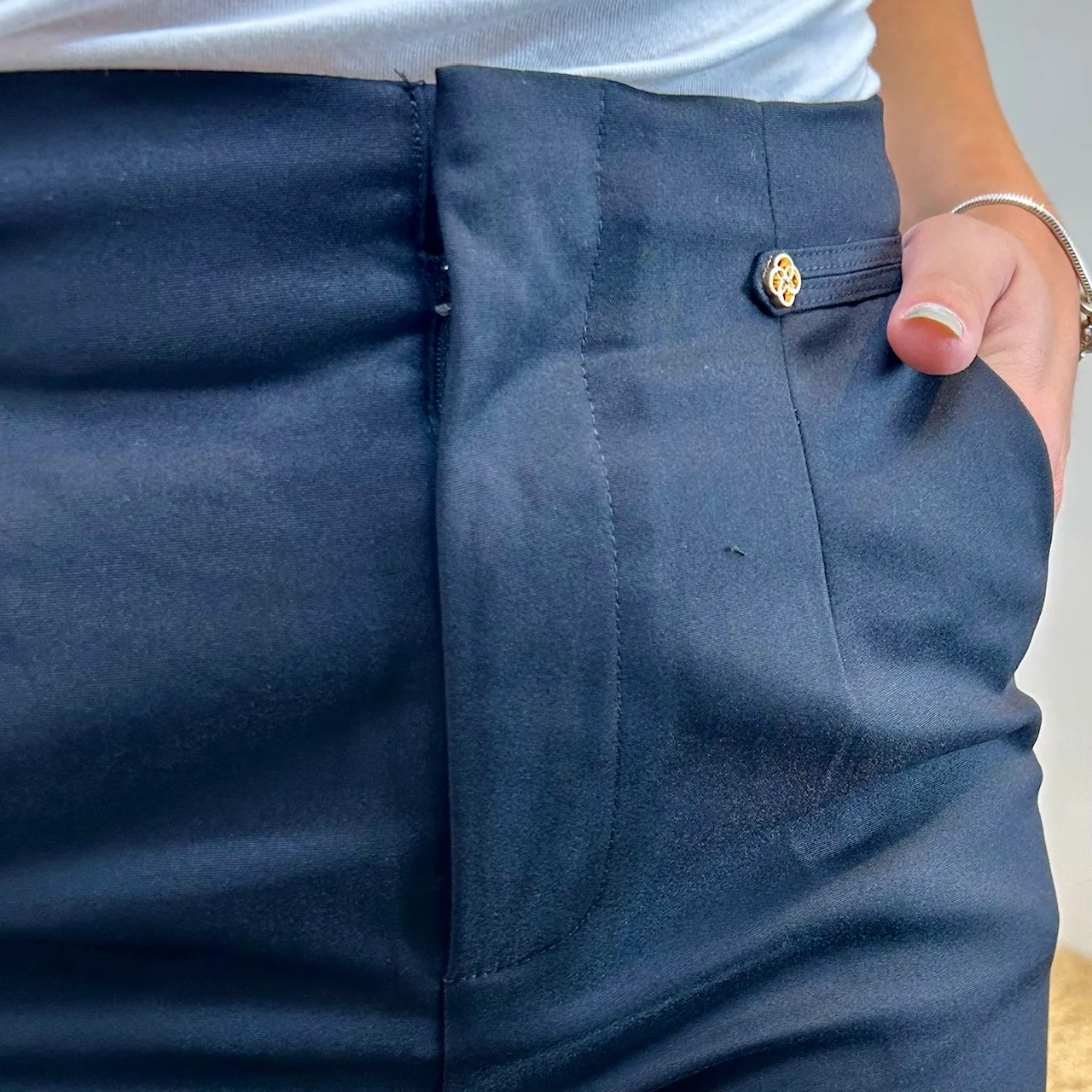 2 fausses poches à rabat boutonné au dos pour une touche de structure.