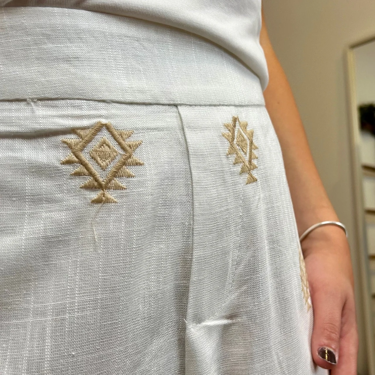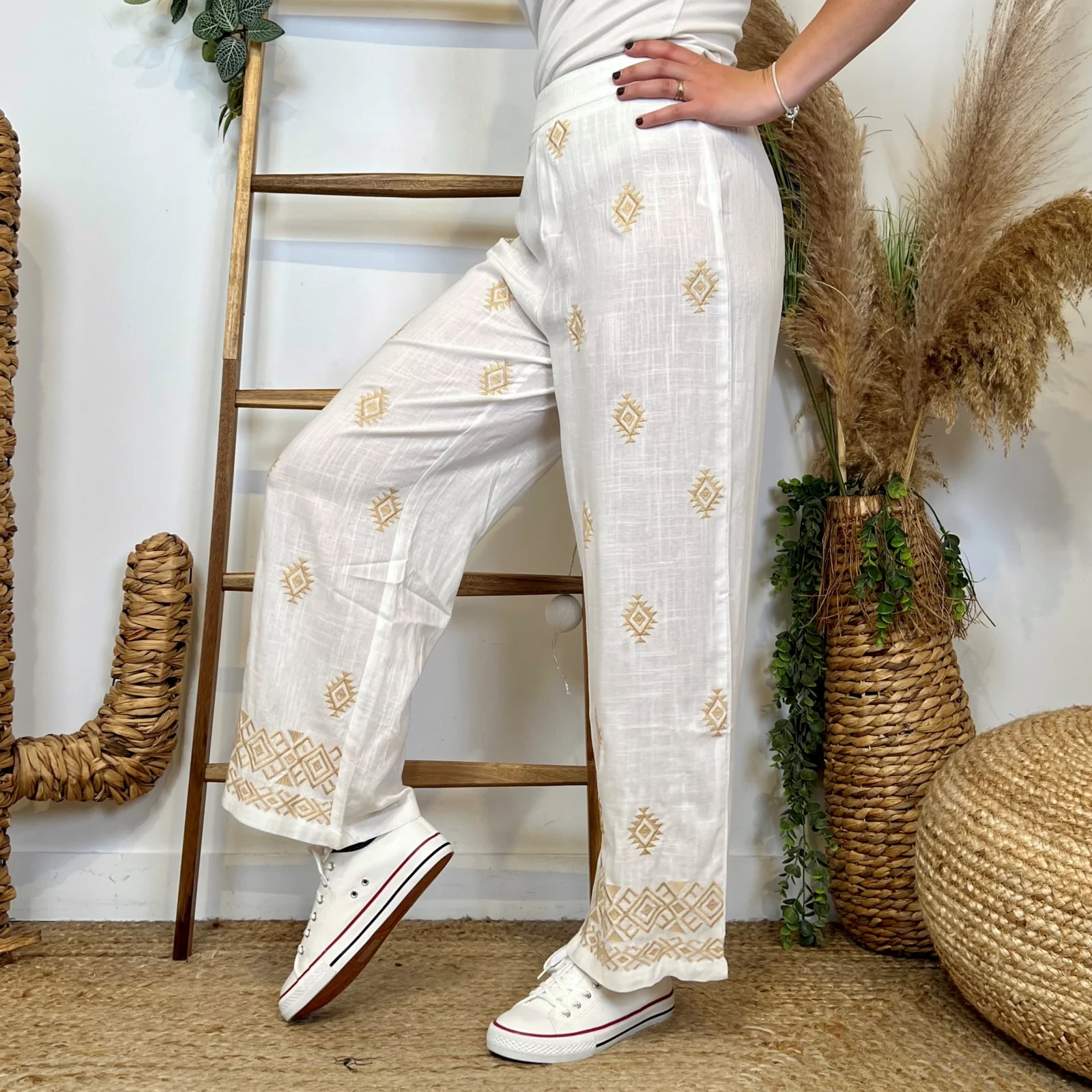 Pantalon uni droit flare boho et finition imprimée de la marque Version féminin
