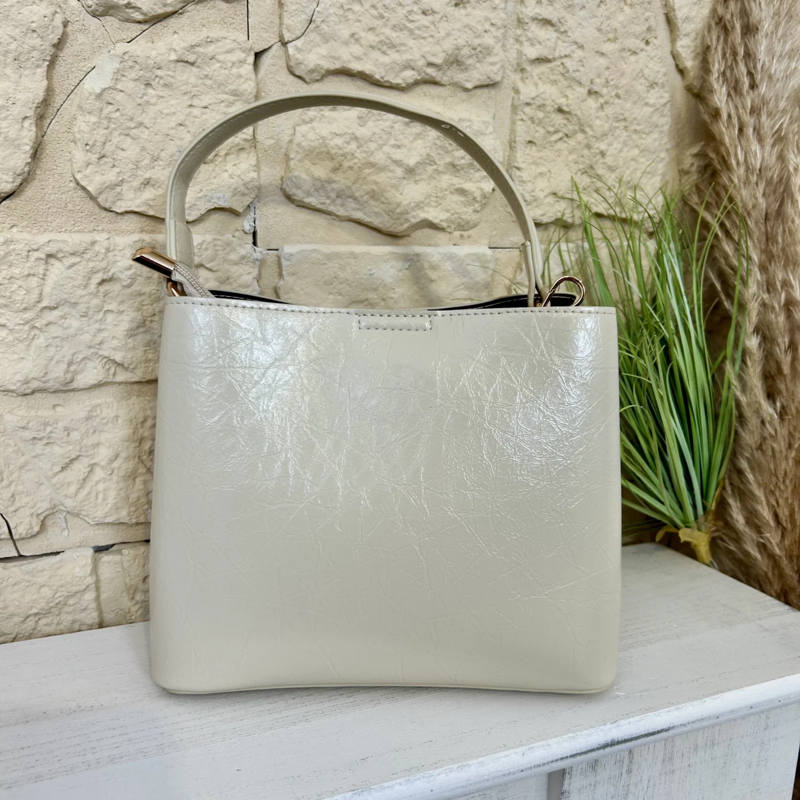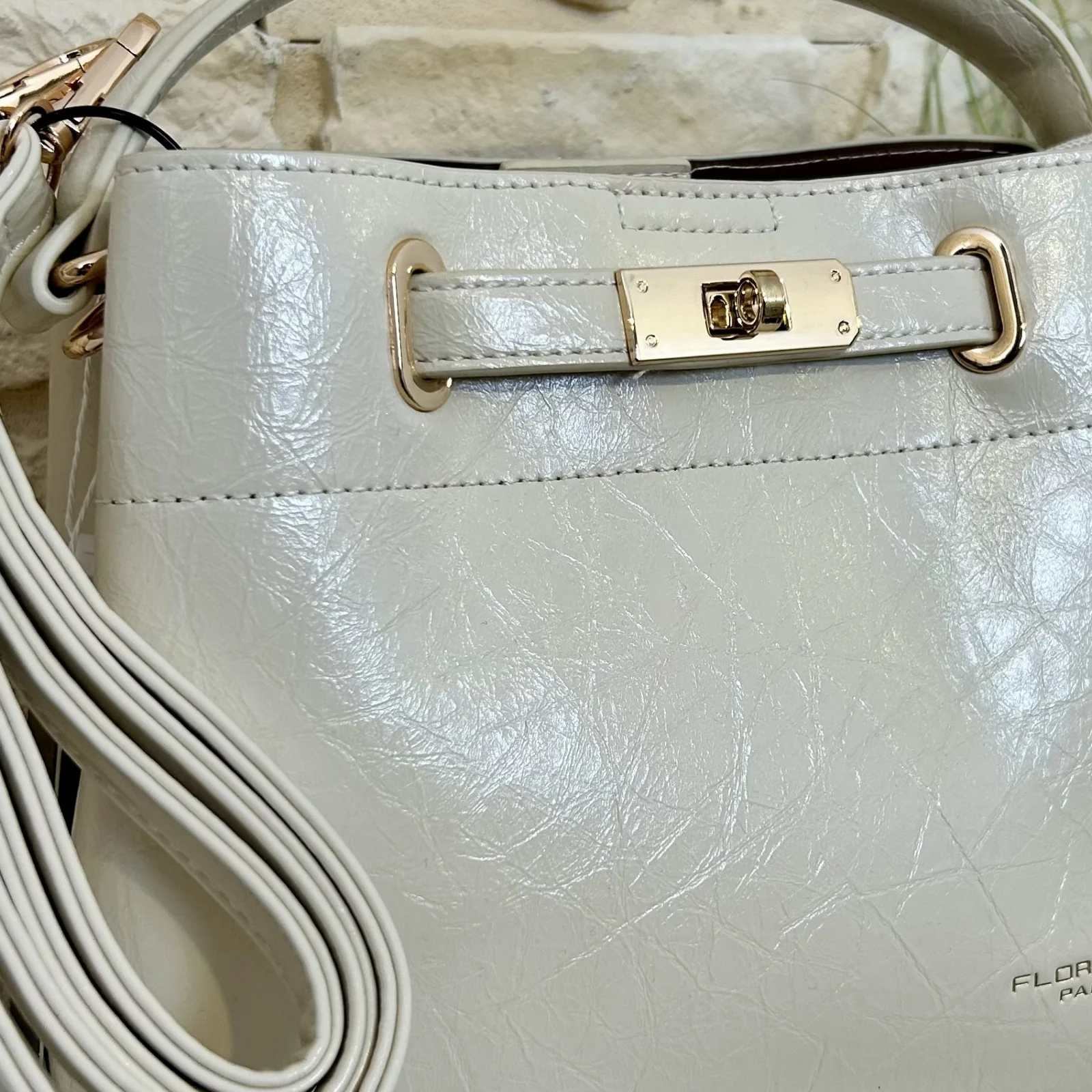 Confectionné en matière synthétique grainée de qualité, il séduit par sa texture raffinée et sa tenue impeccable. Son fermoir métallique signature apporte une touche chic et moderne, tandis que sa anse permet un porté épaule élégant.