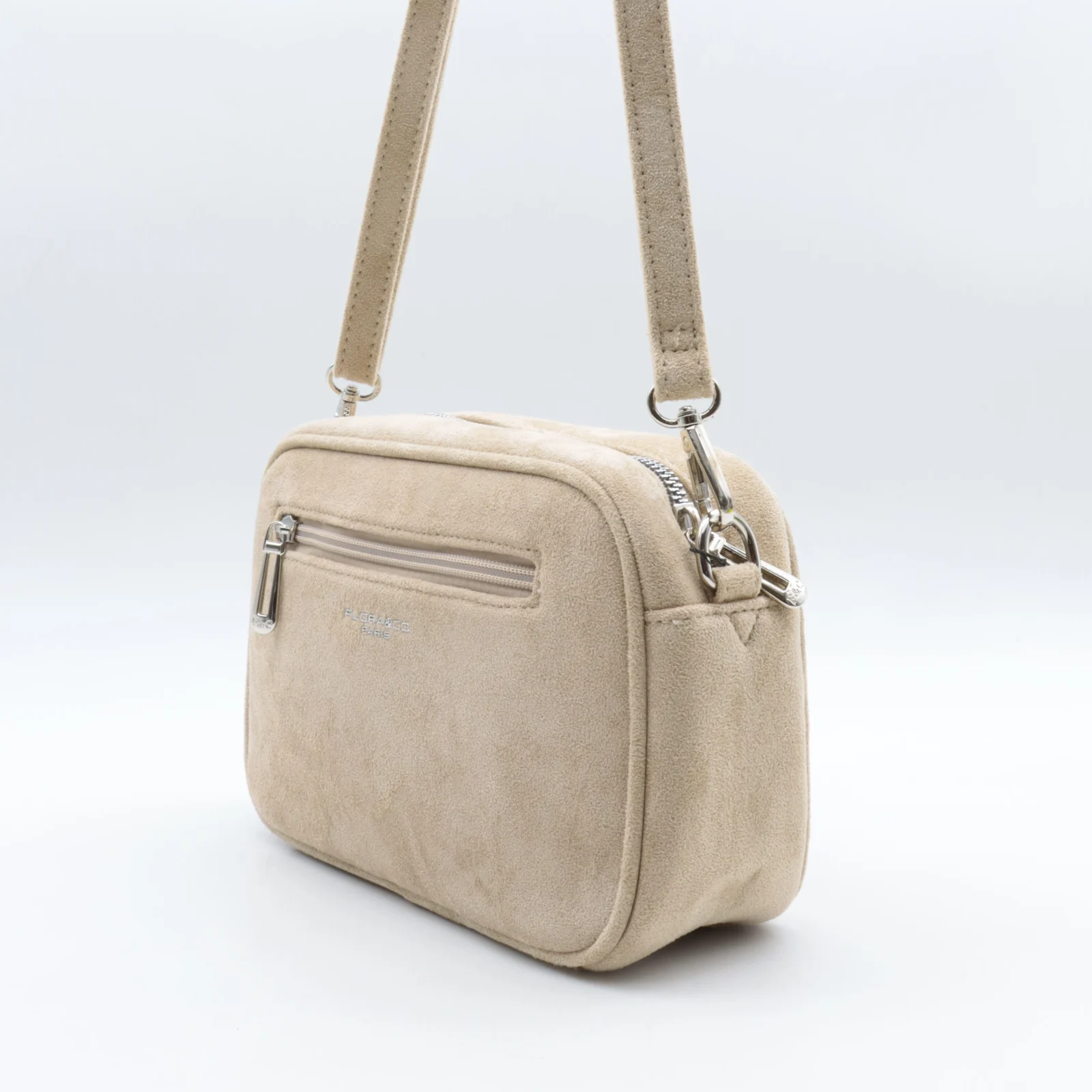 O980- Sac bandoulière aspect daim à pastilles