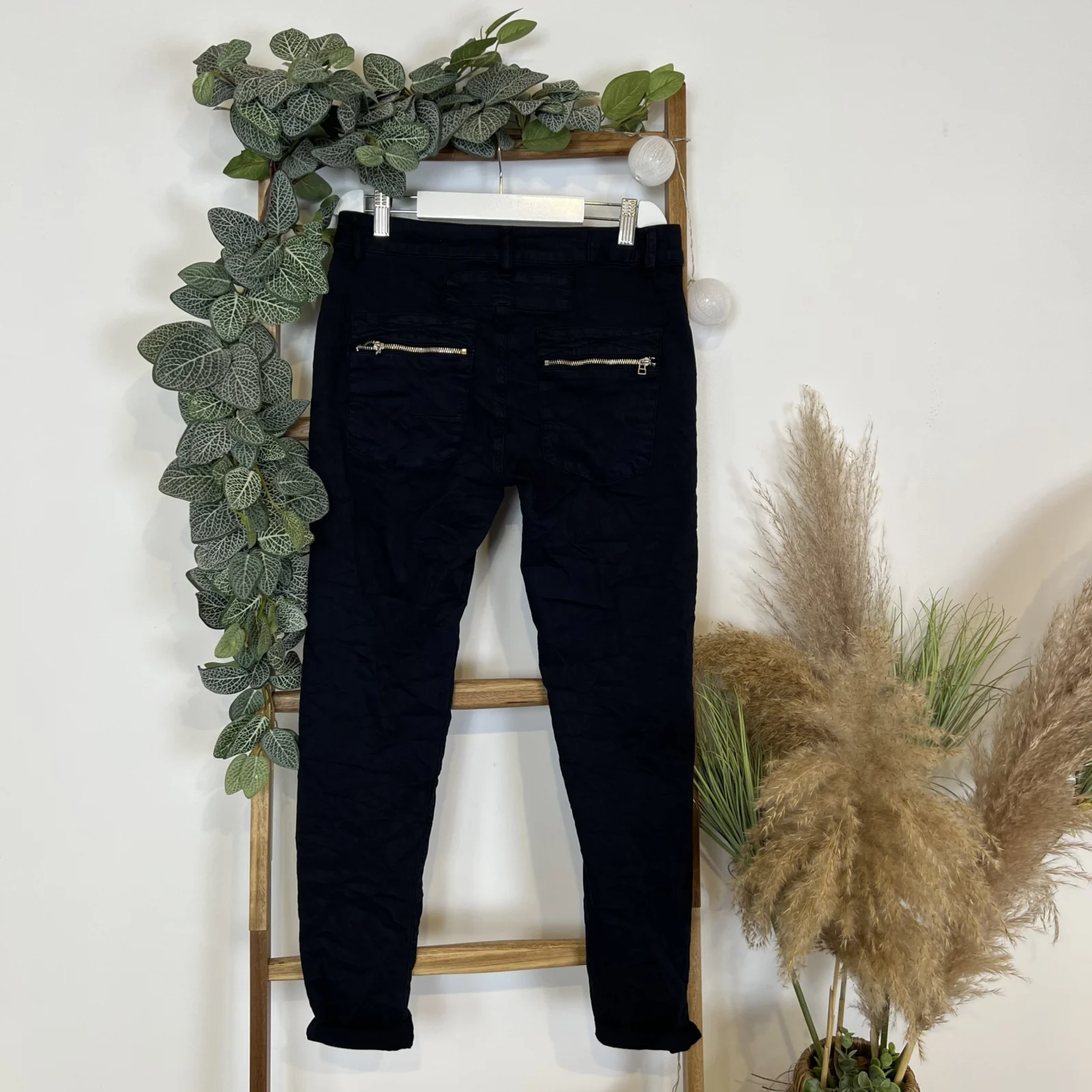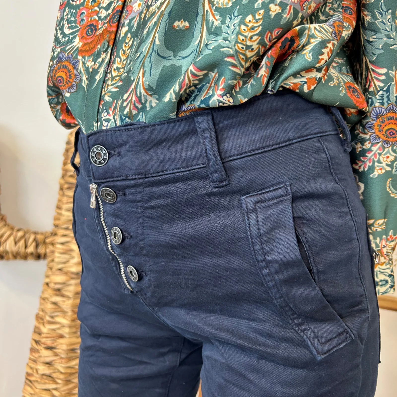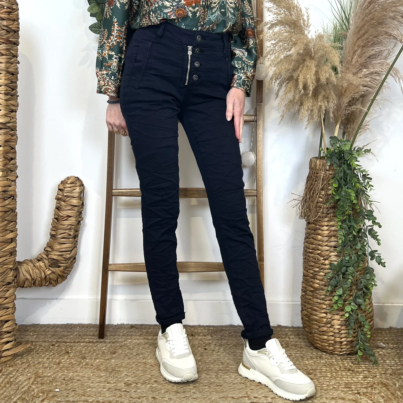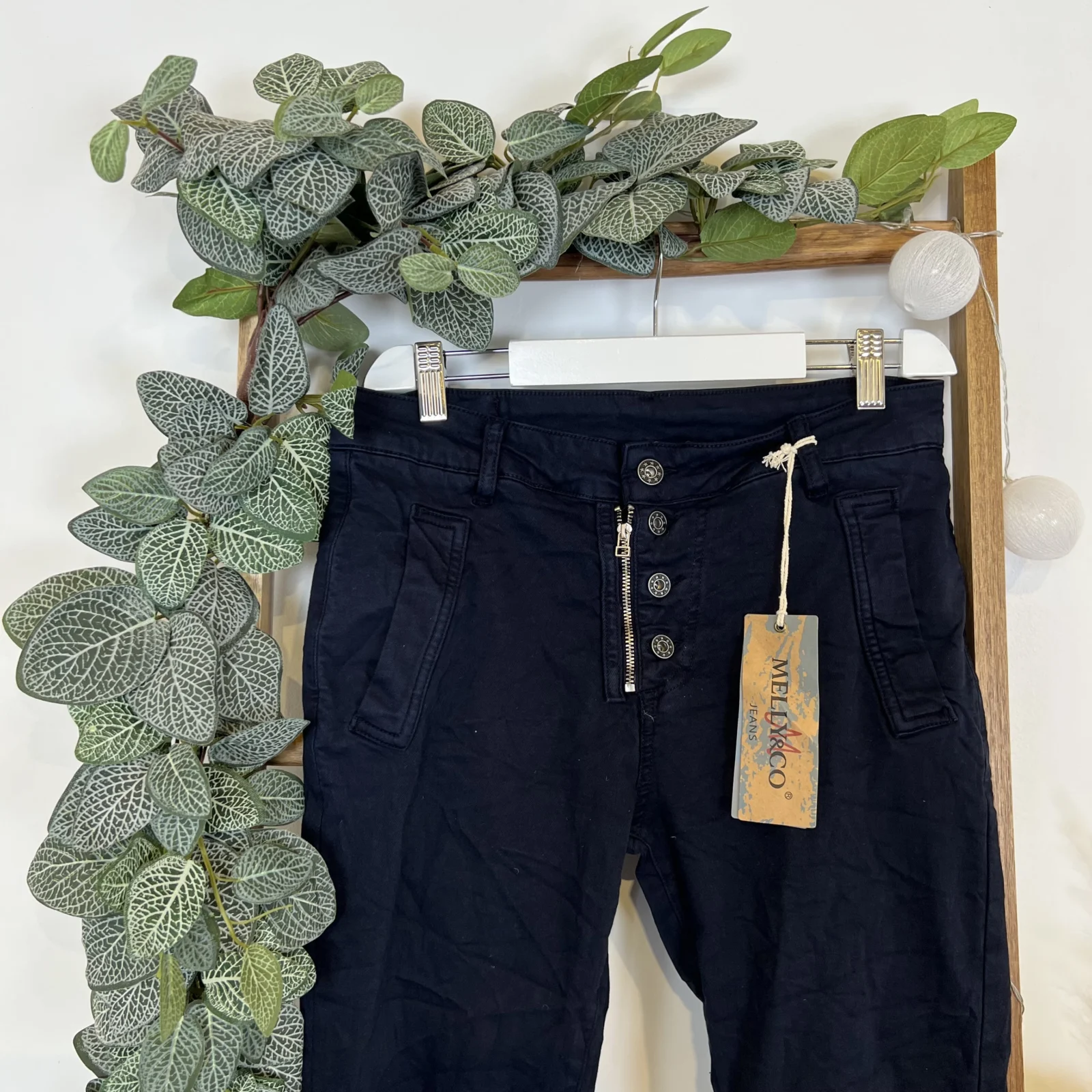 Tous ces jeans Melly and Co , sont proposés volontairement froissés délavés et shootés ainsi. En acquérir un c’est le risque de Vous ne plus pouvoir vous en passer, et toutes les couleurs proposées vous séduiront au fil des saisons.!. Si vous n’aimez pas ce concept, ce froissé non permanent disparaîtra avec un simple coup de fer.