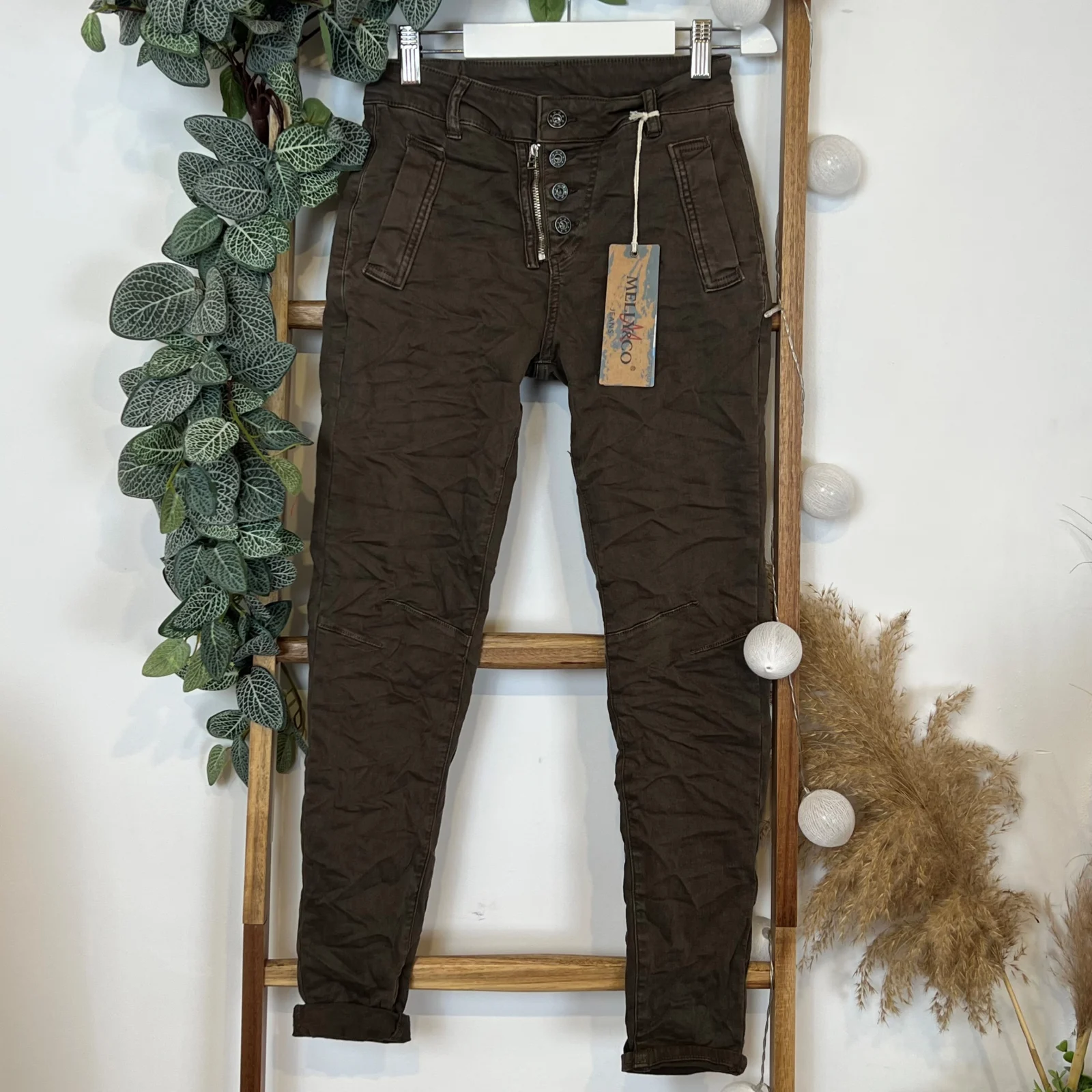 Tous ces jeans Melly & Co sont proposés volontairement froissés et délavés. En acquérir un, c’est le risque de ne plus pouvoir vous en passer. Les couleurs proposées vous séduiront au fil des saisons ! Si vous n’aimez pas ce concept, ce froissé non permanent disparaîtra avec un simple coup de fer.