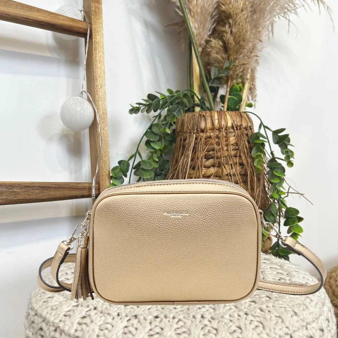 Modèle souple, aspect cuir. Sac bandoulière, fermeture glissière pour plus de sécurité