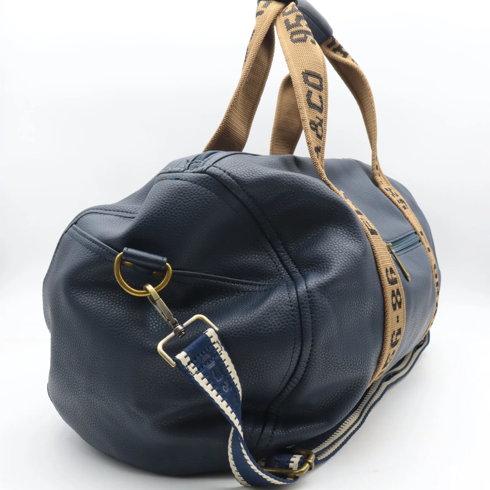 Sac forme Bowling aspect cuir et sangles en tissus