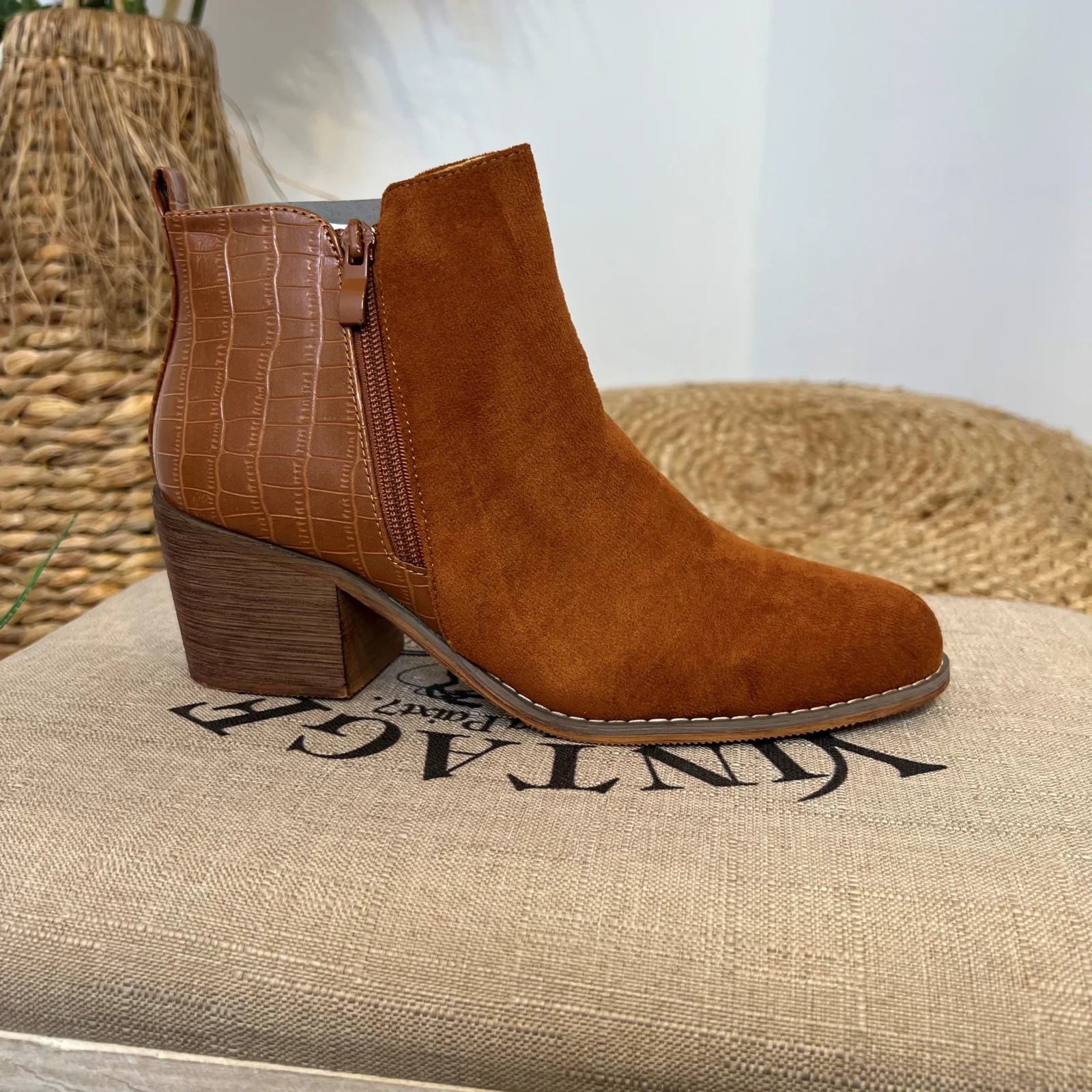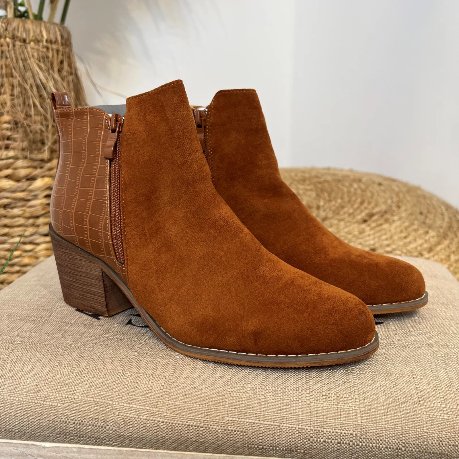 Matière: aspect daim et croco. touché duveteux
