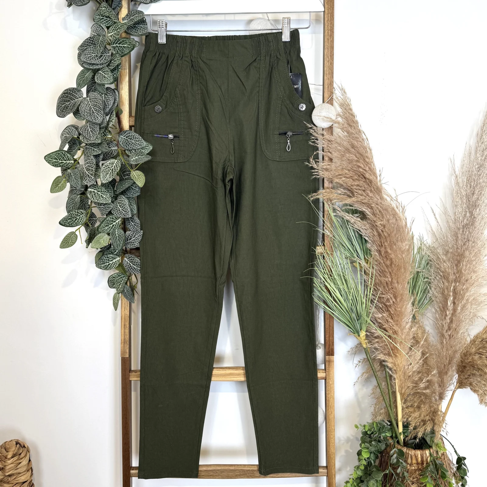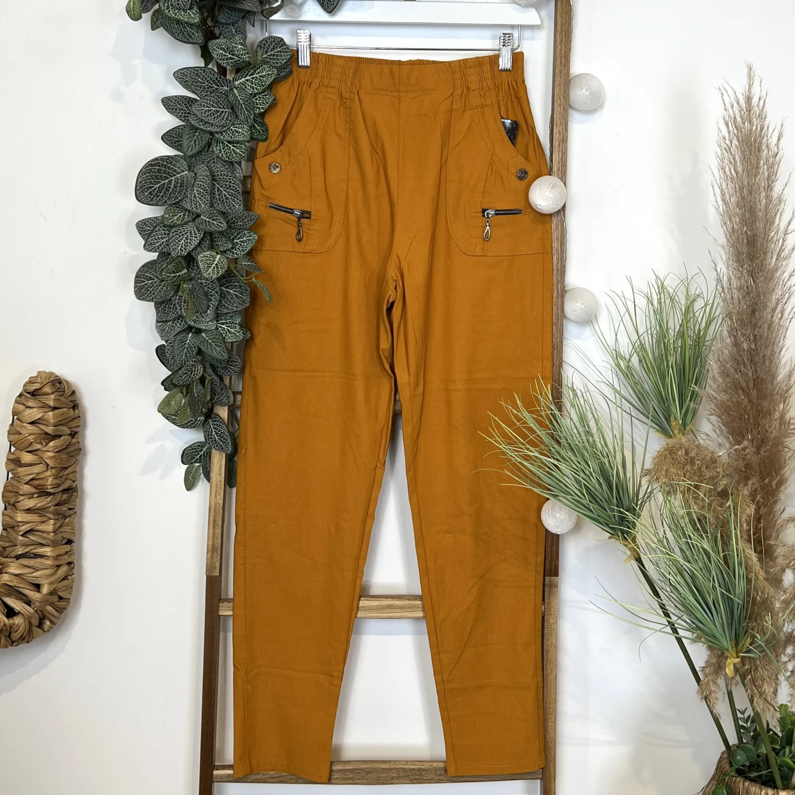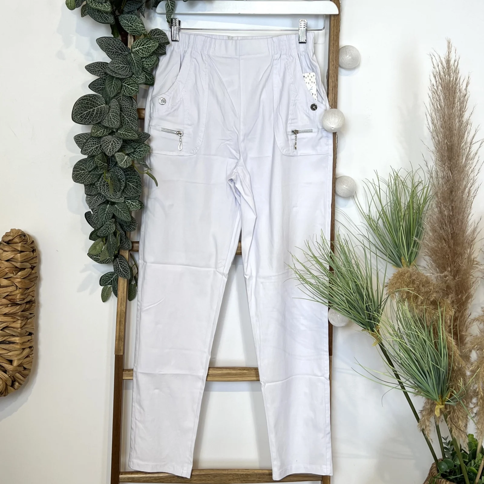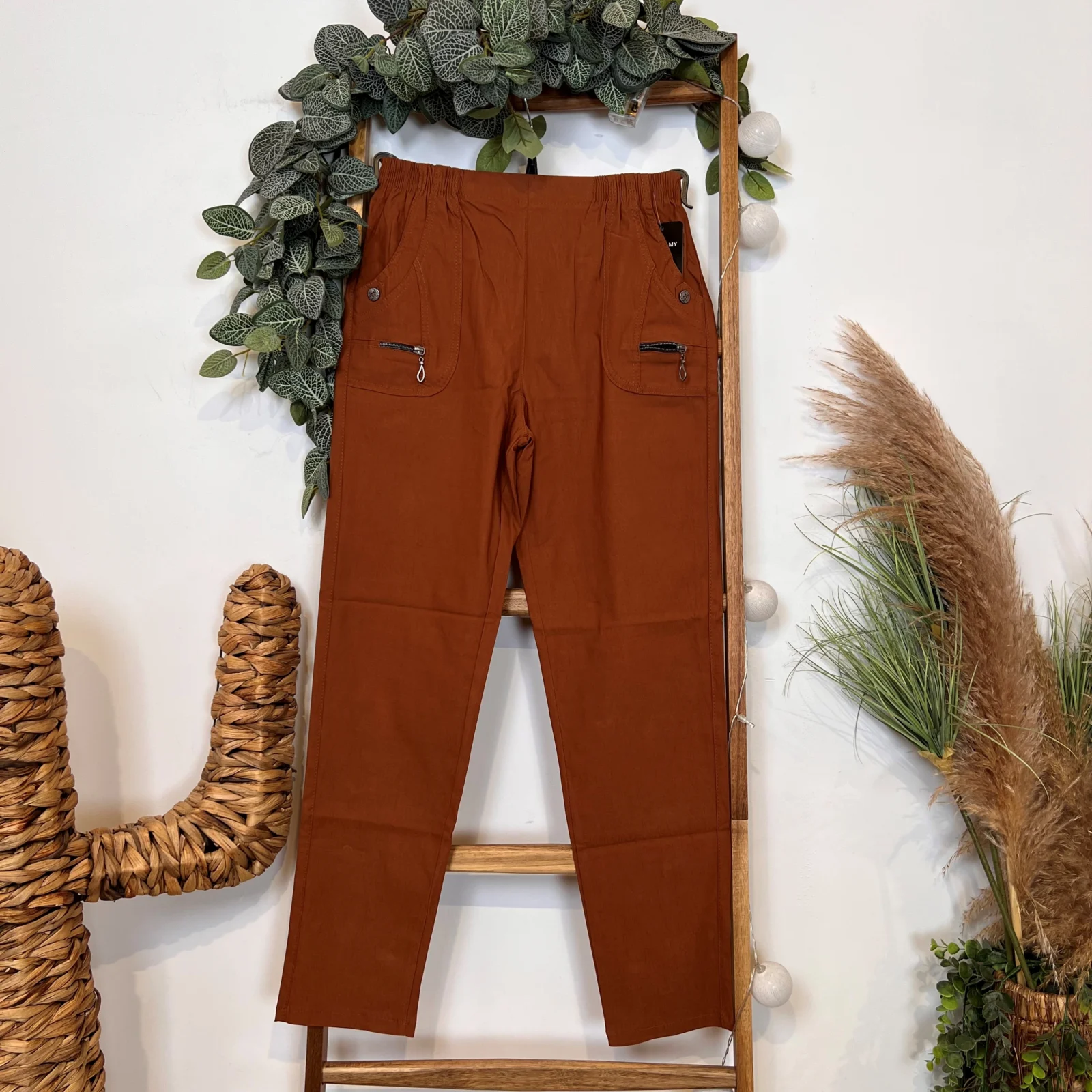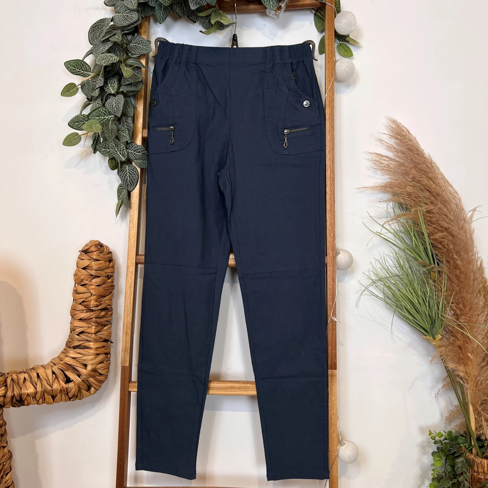 A la fois classique de part sa coupe et fantaisie avec ses finitions au niveau des poches, ce pantalon taille haute est proposé avec sa taille élastique et ses poches sur les côtés. Un modèle indispensable dans les penderies Confort.