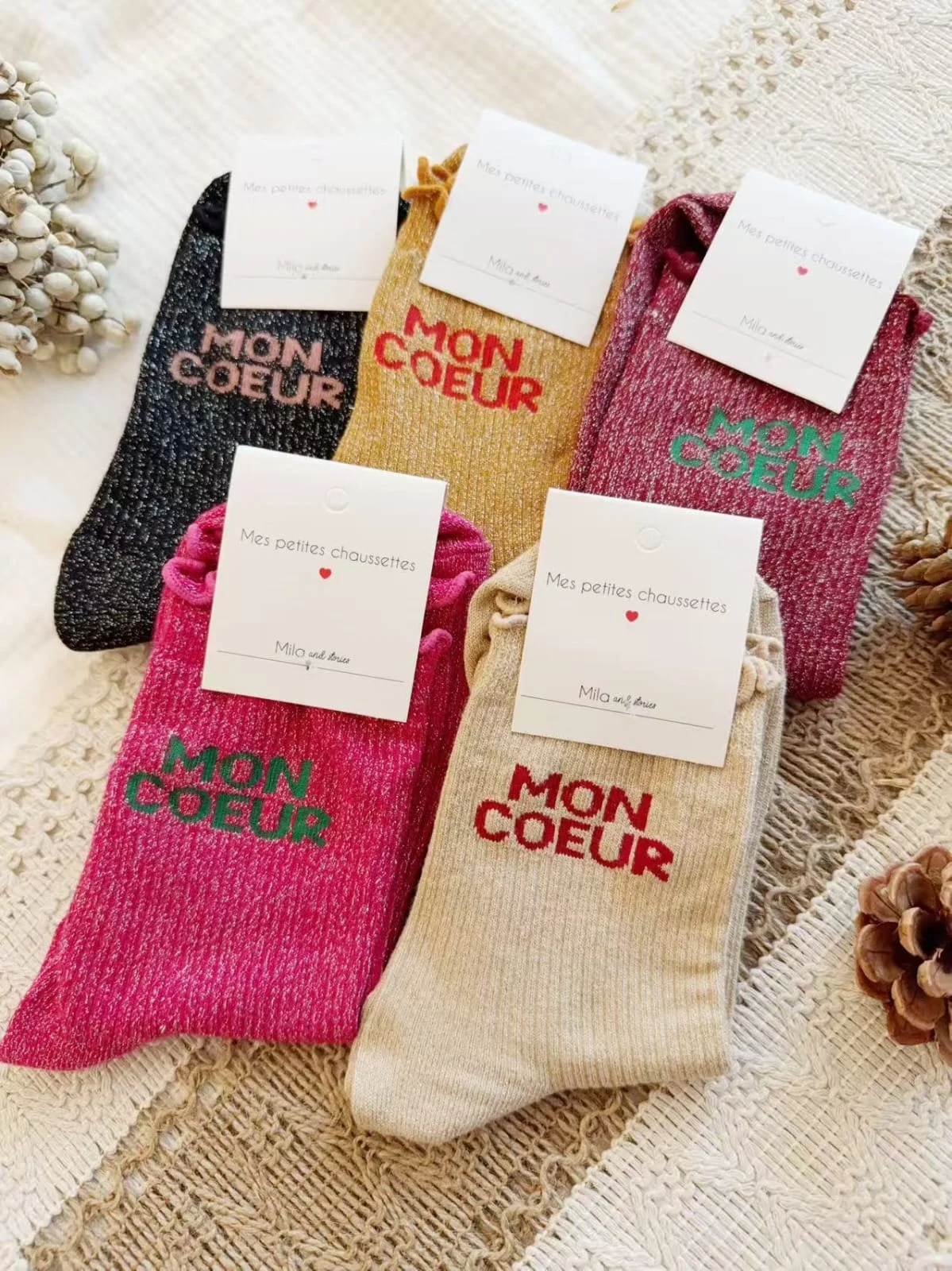 Chaussettes paillettes colorées mot fantaisie. plusieurs modèles au choix dans notre catégorie “Accessoires“: