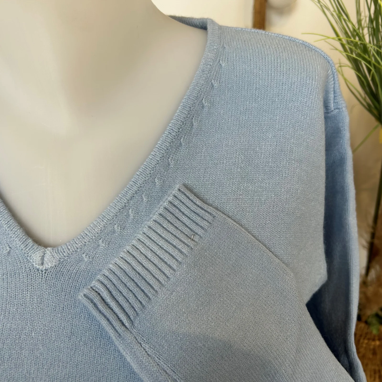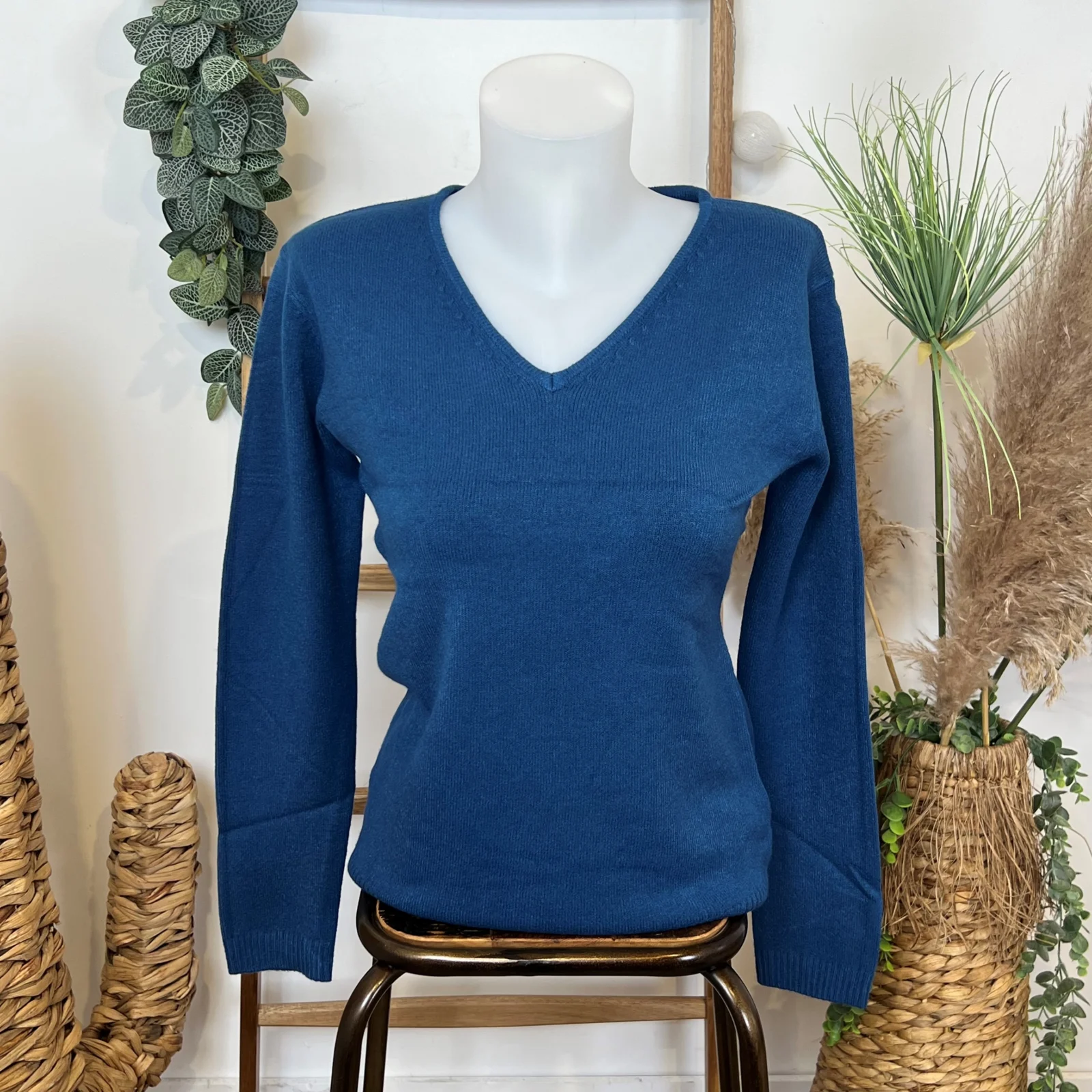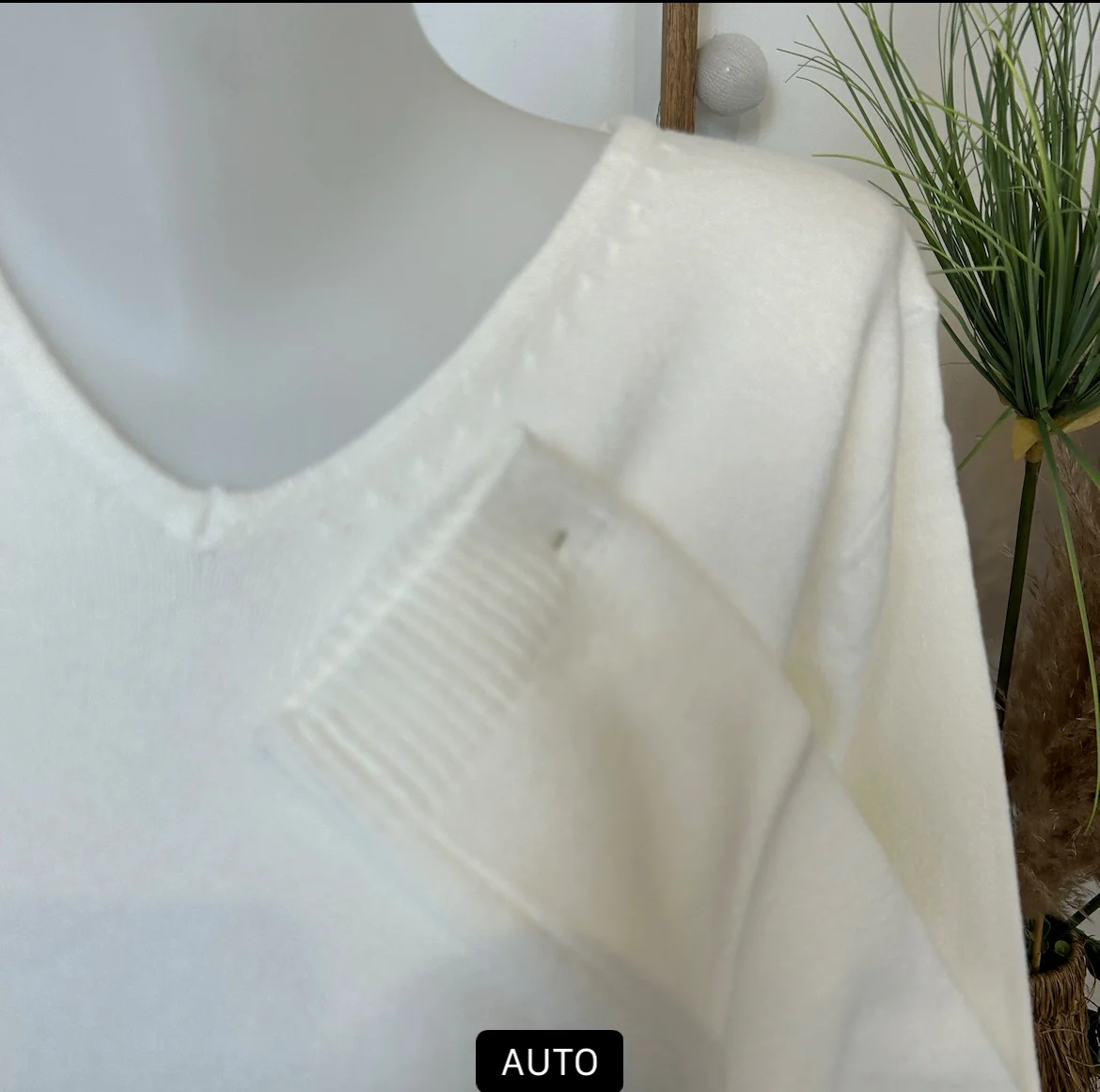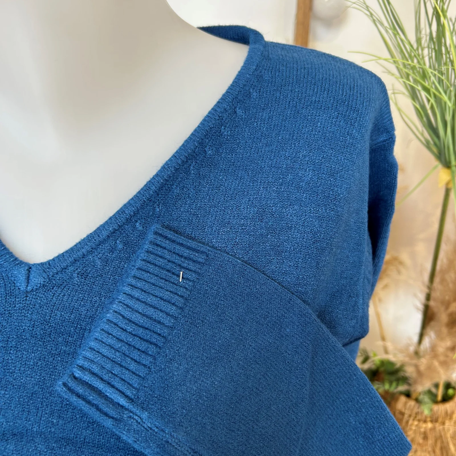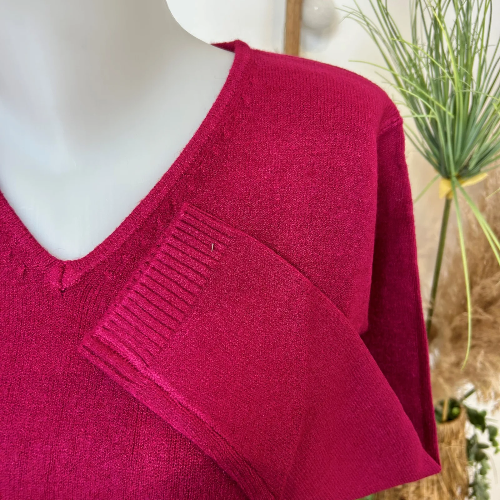 Pull uni Tricotonic col v. Bord cotelé au niveau des poignets et du col.