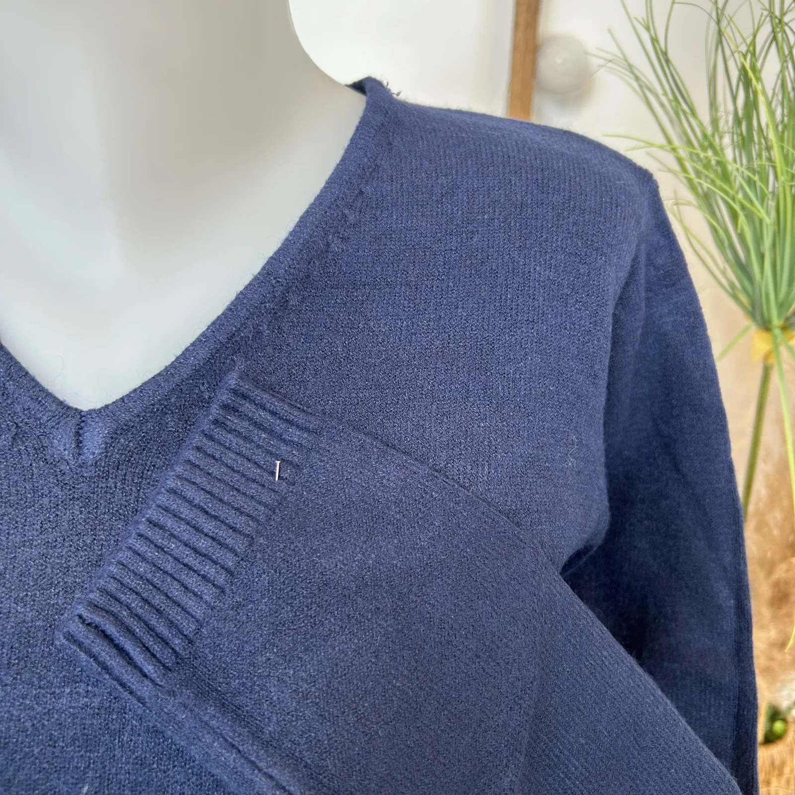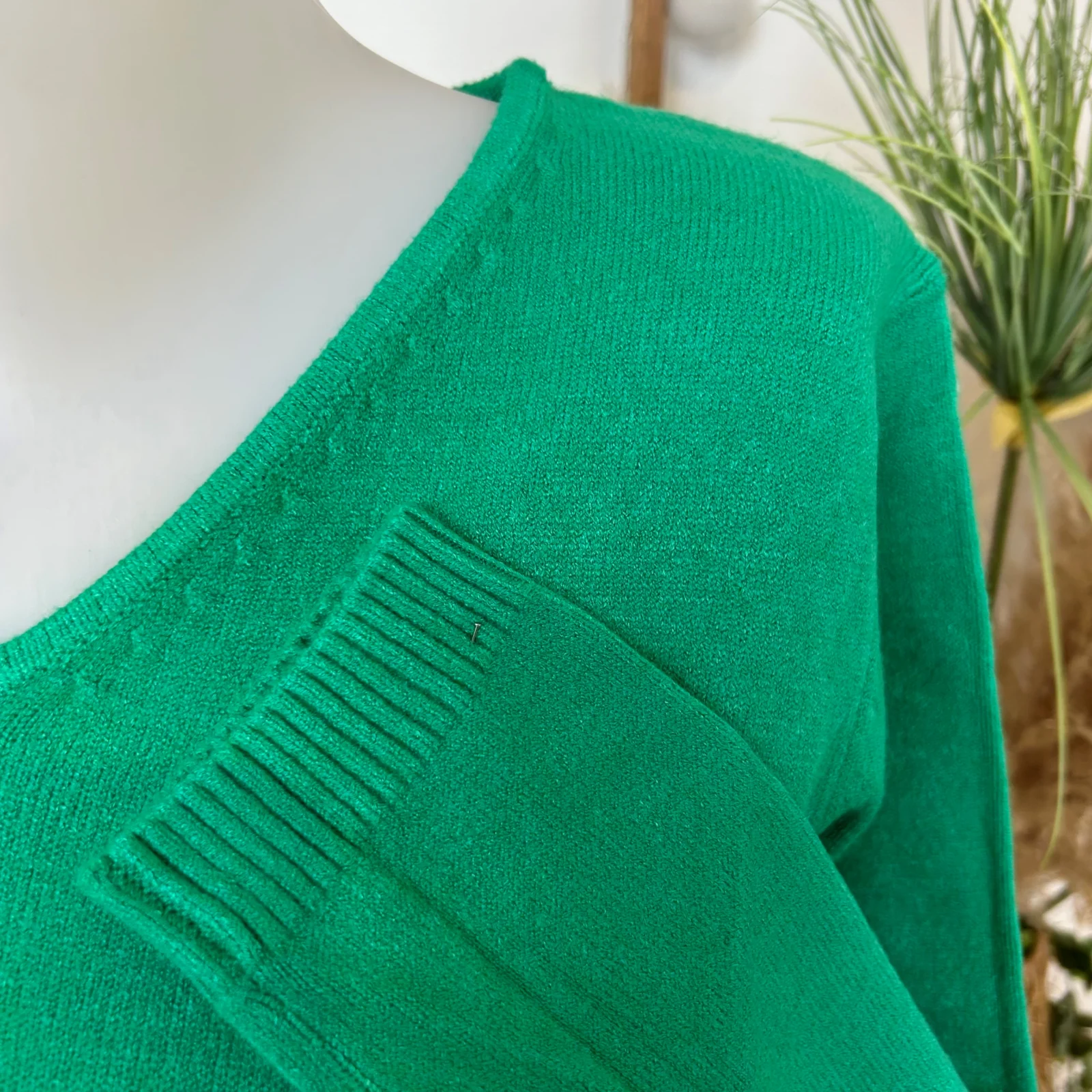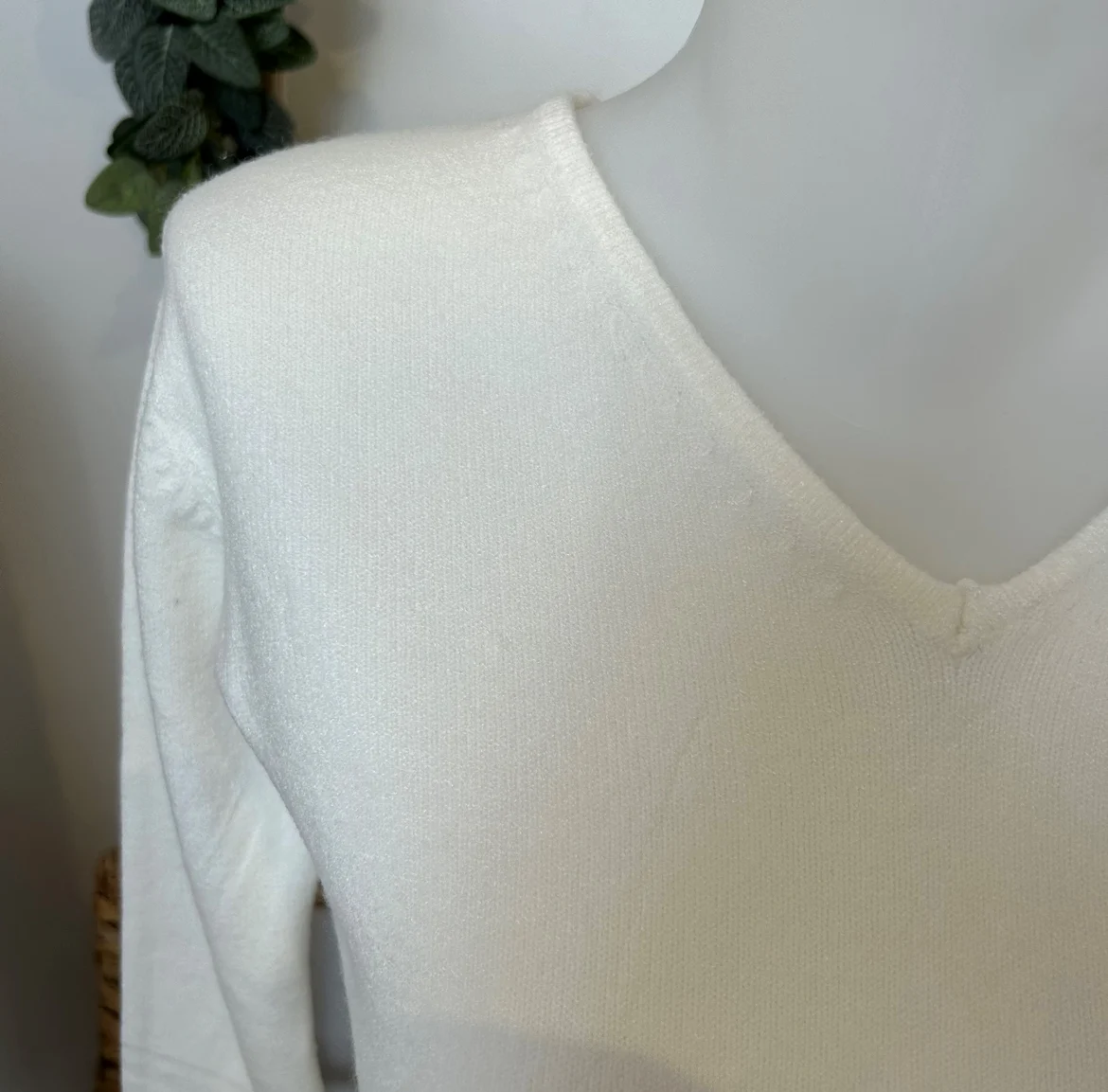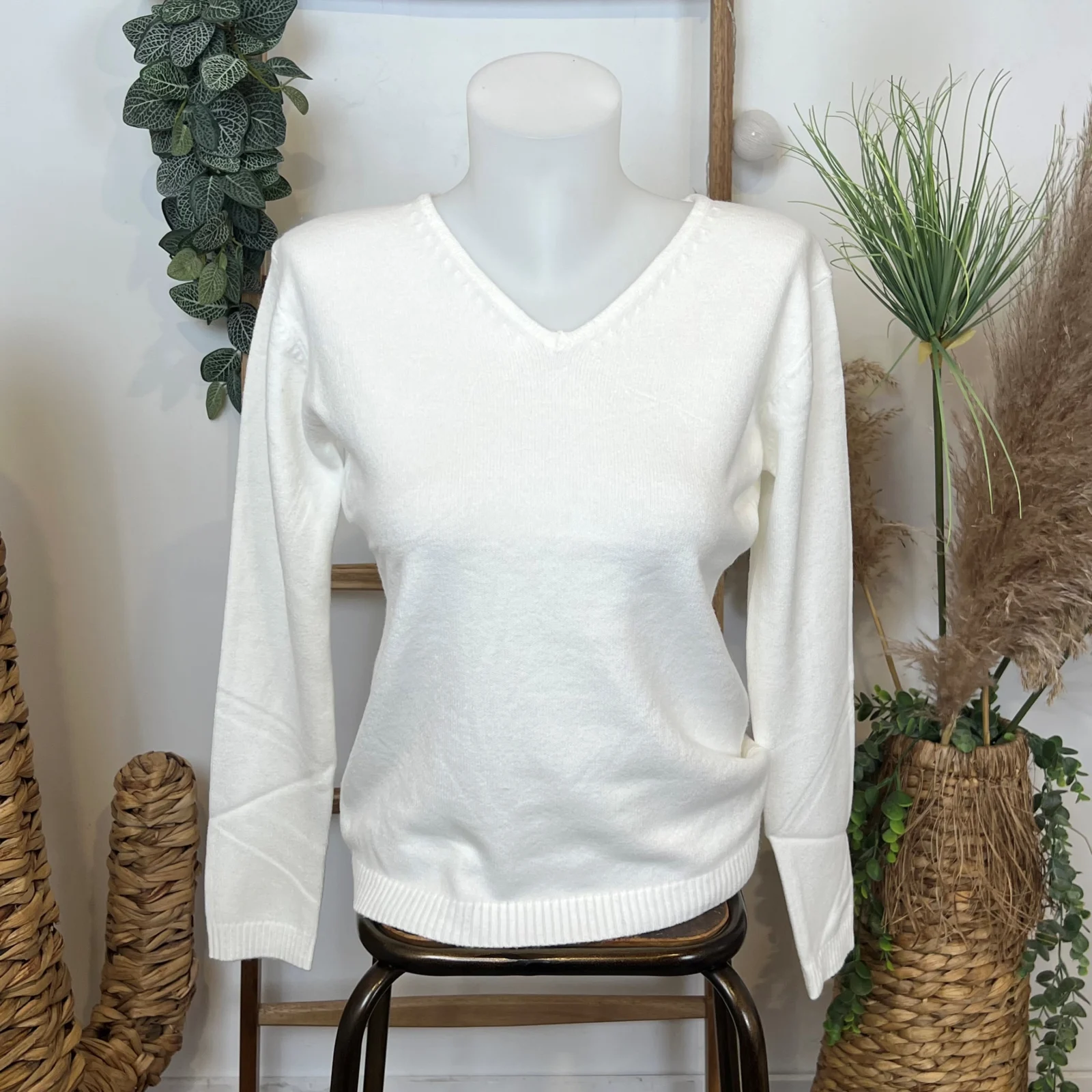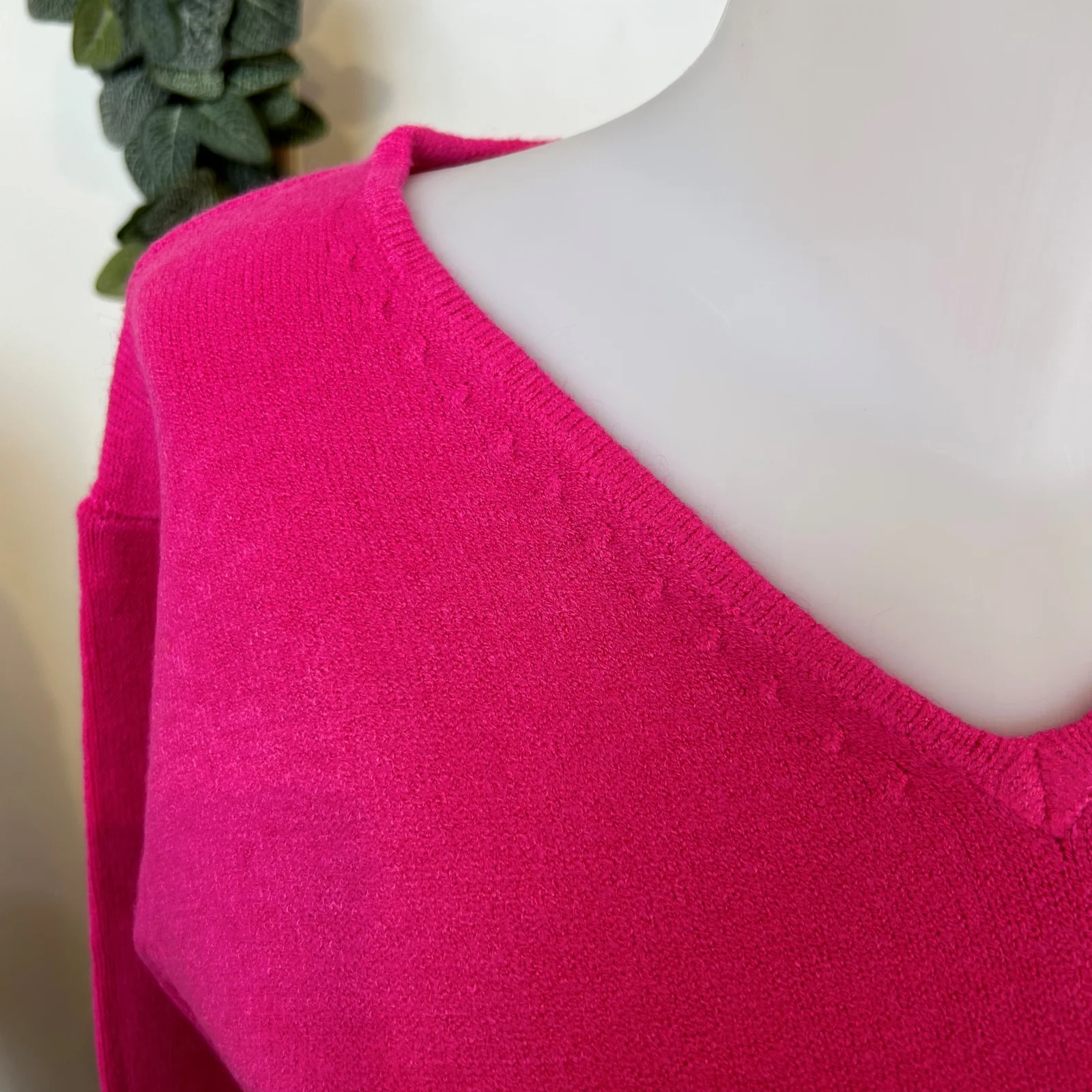 Pull uni Tricotonic col v. Bord cotelé au niveau des poignets et du col.