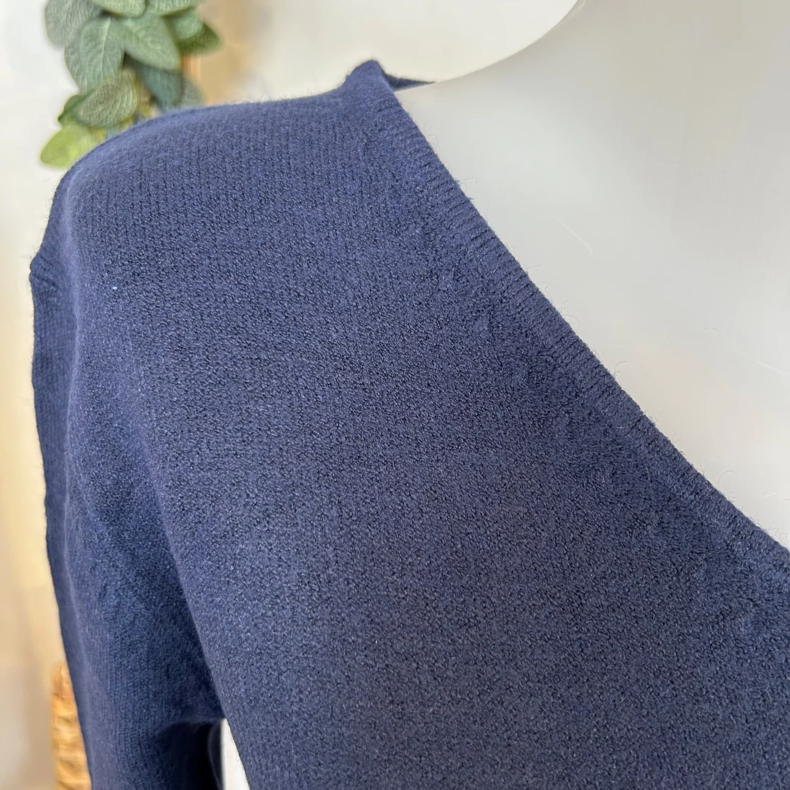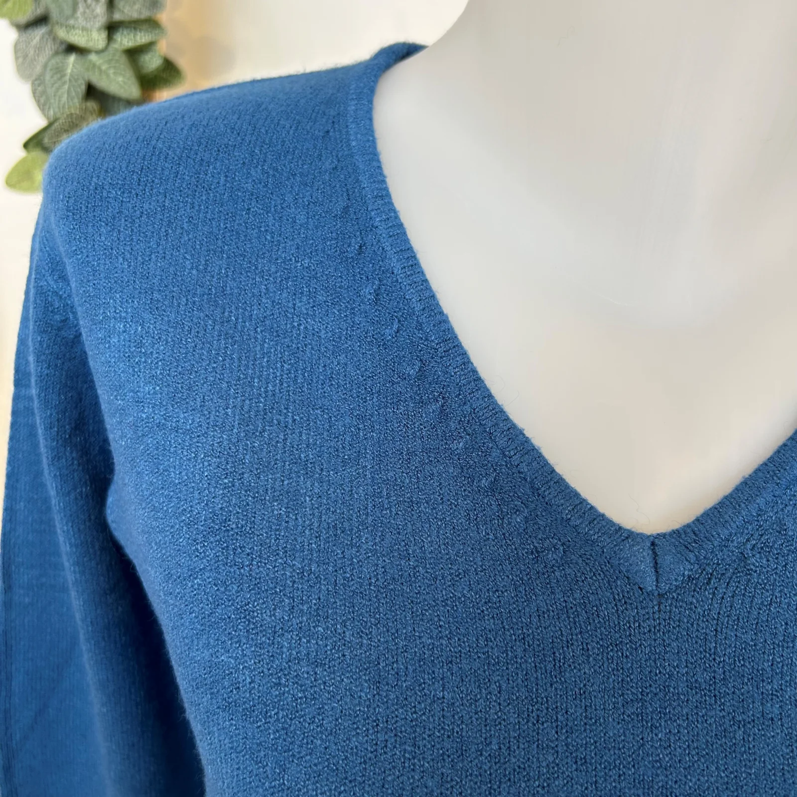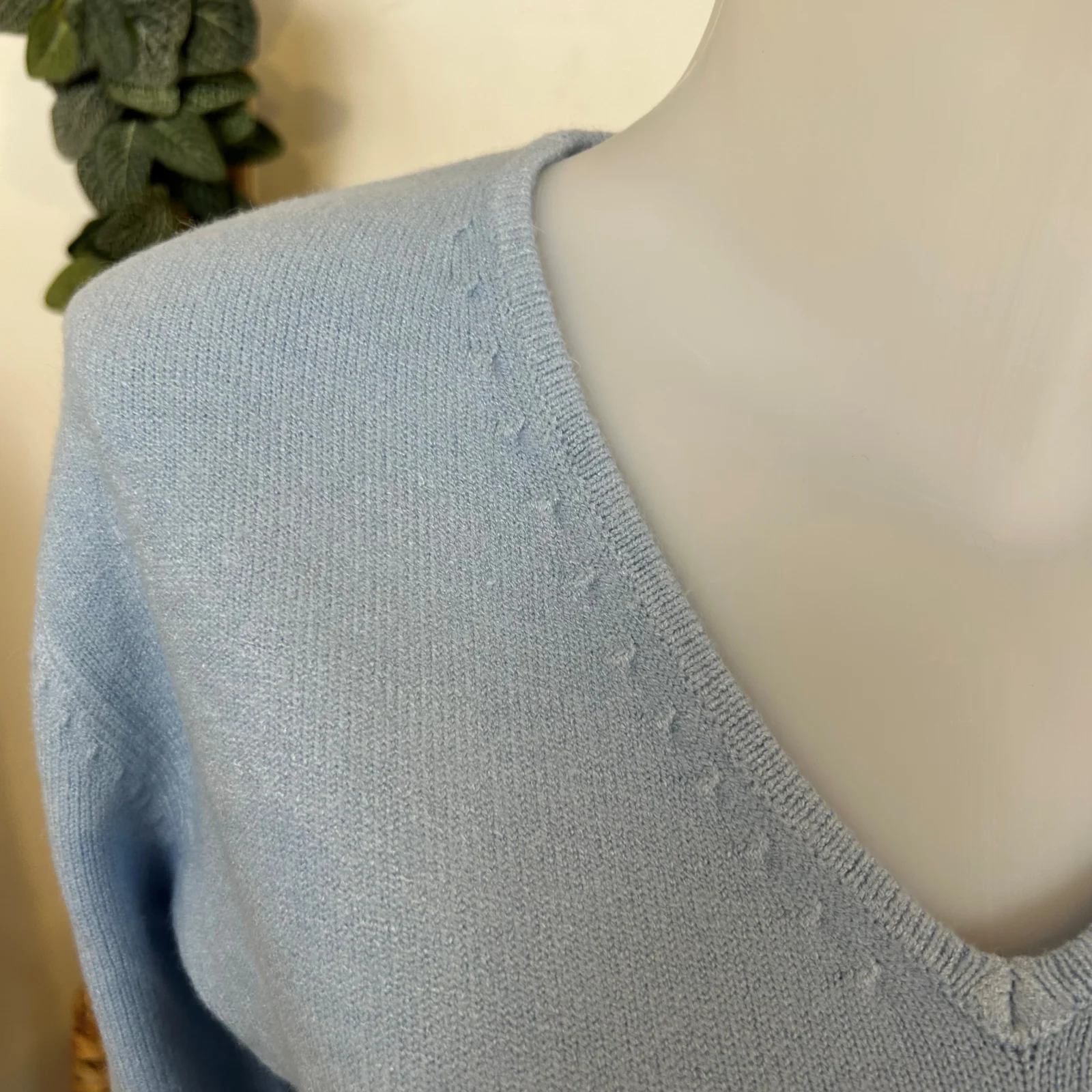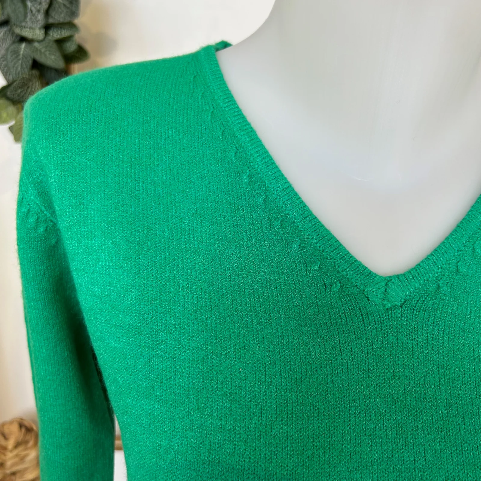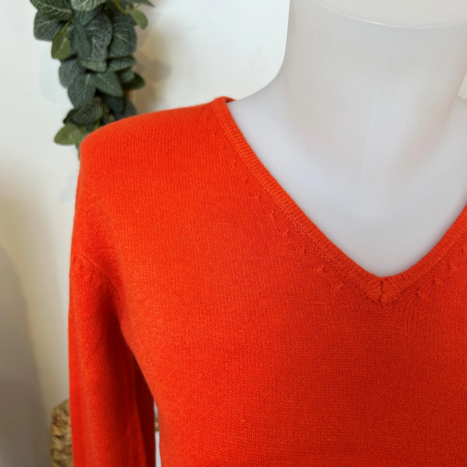 Pull uni Tricotonic col v. Bord cotelé au niveau des poignets et du col.