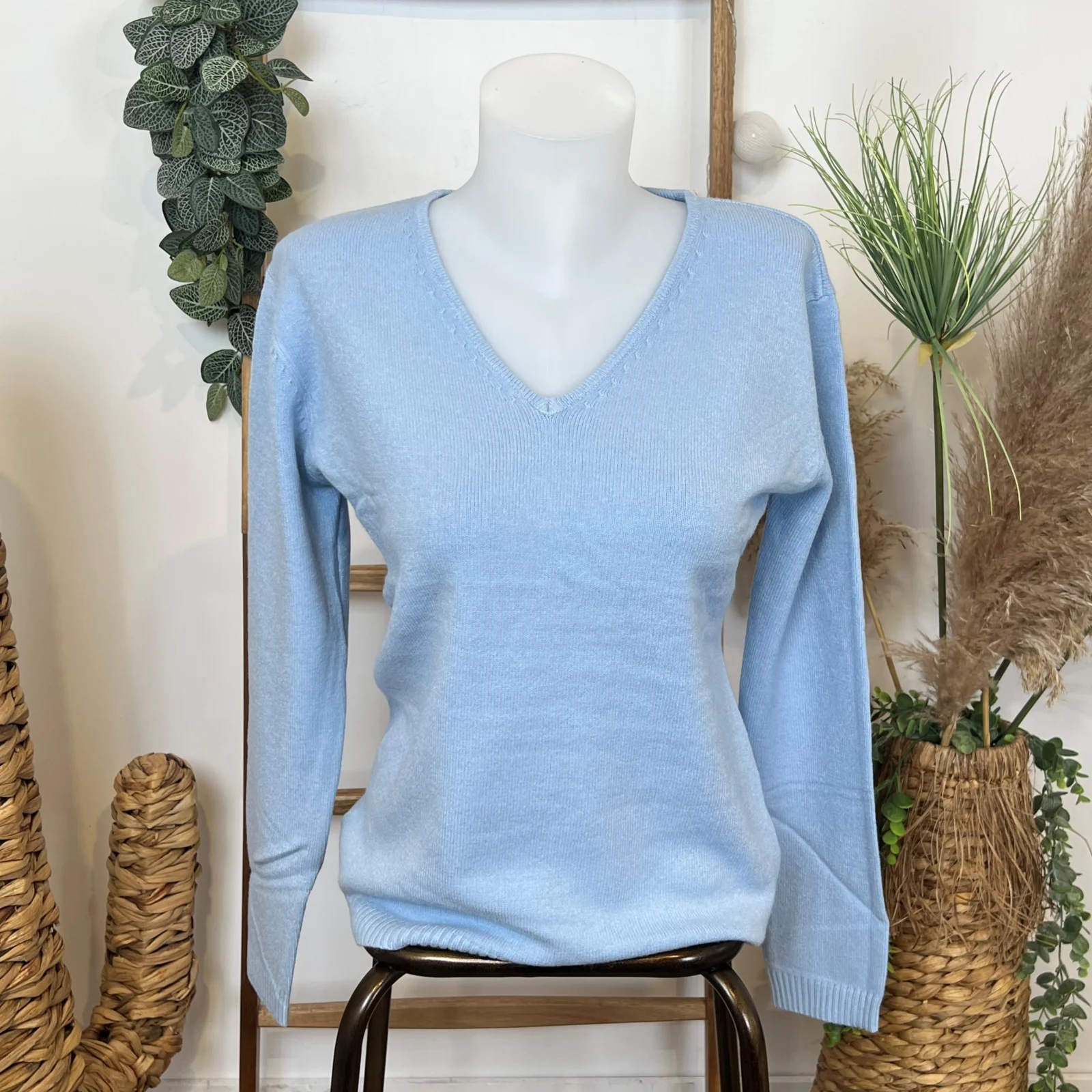 Des BASICS déclinés dans une palette de couleurs irrésistibles. Différents modèles en laine cachemire se déclinant au fil des mois en: col rond, col V, col roulé …