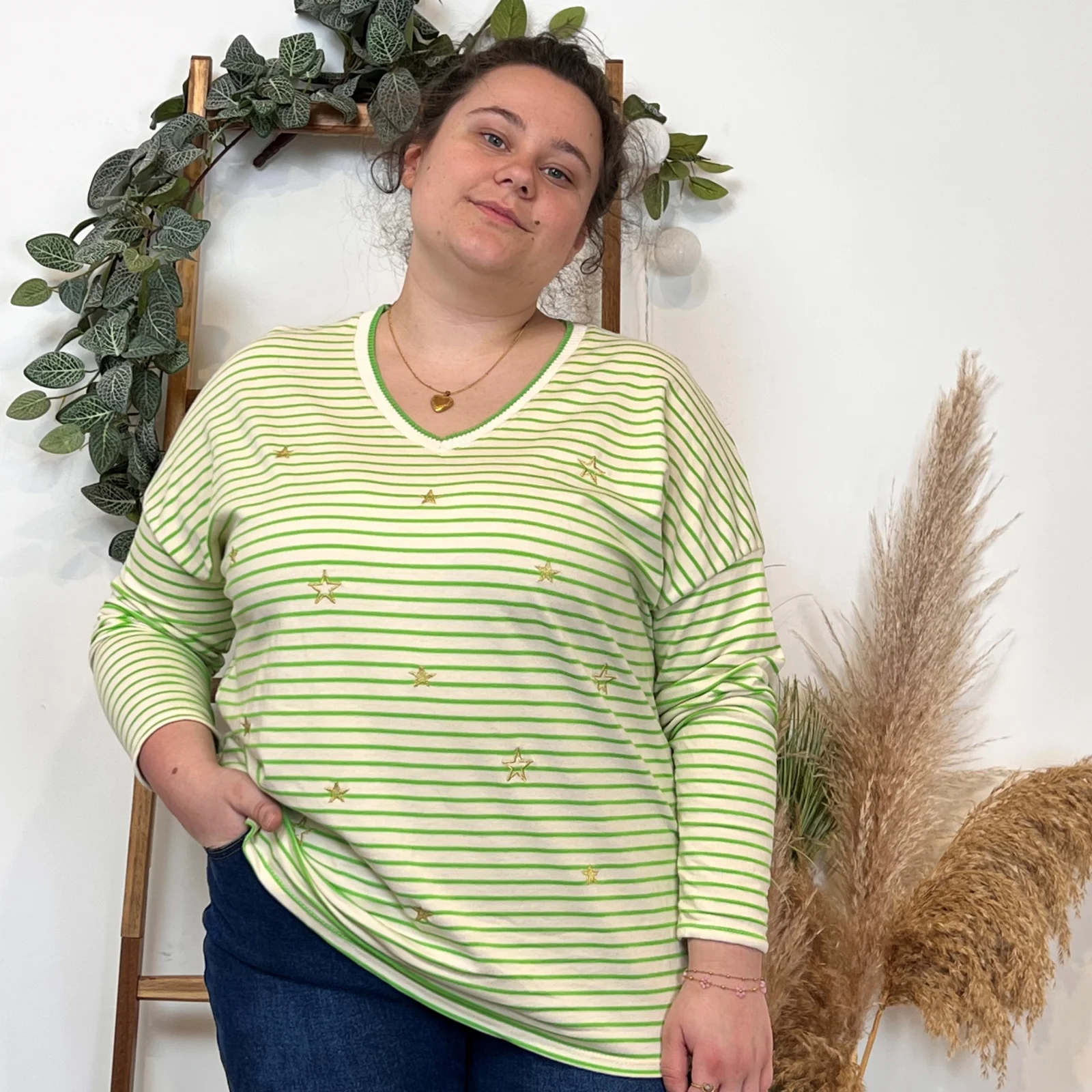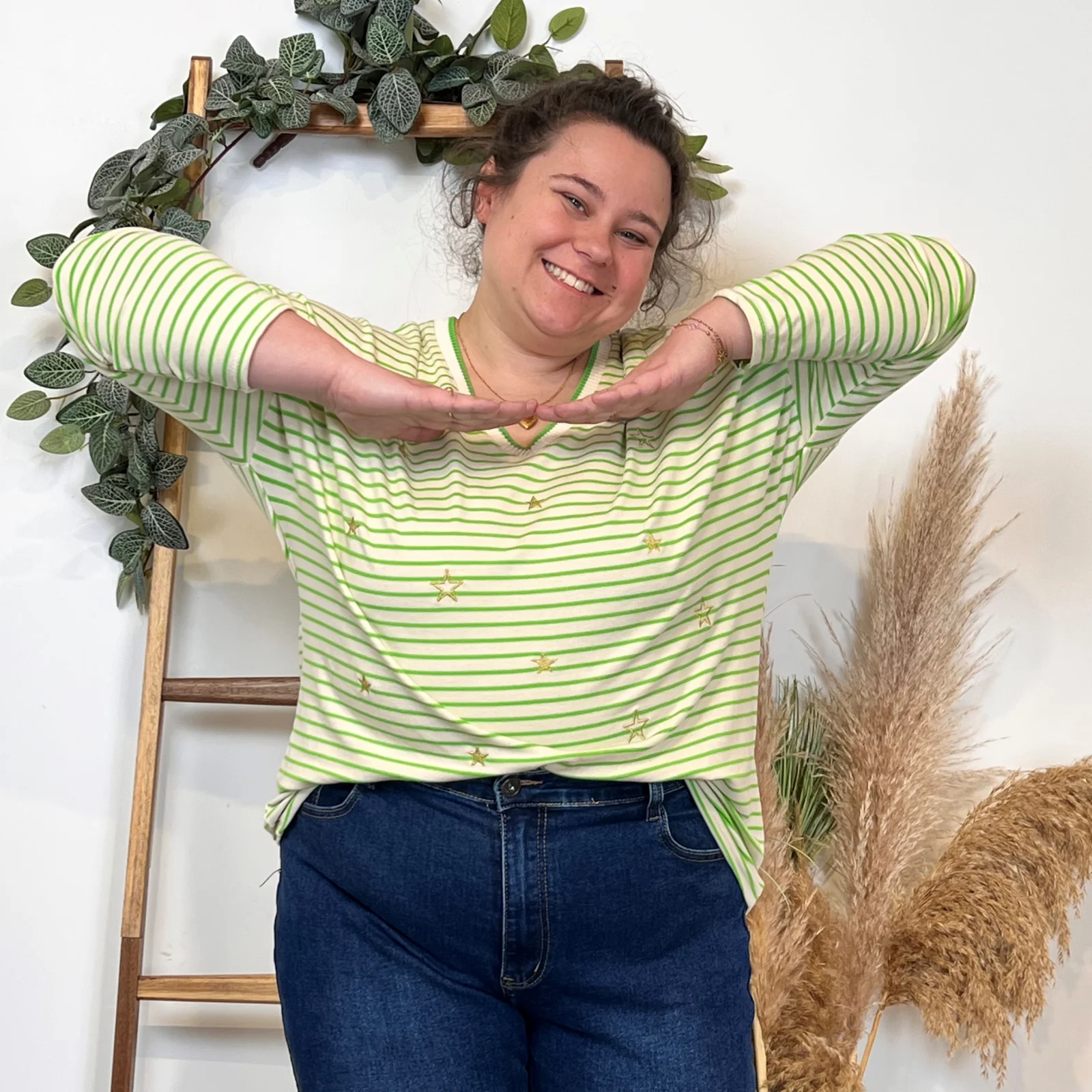 Z182-T Shirt “Mélodie” Rayé & brodé” 🇮🇹