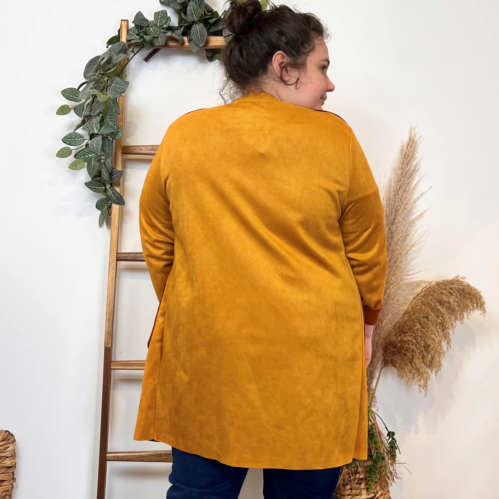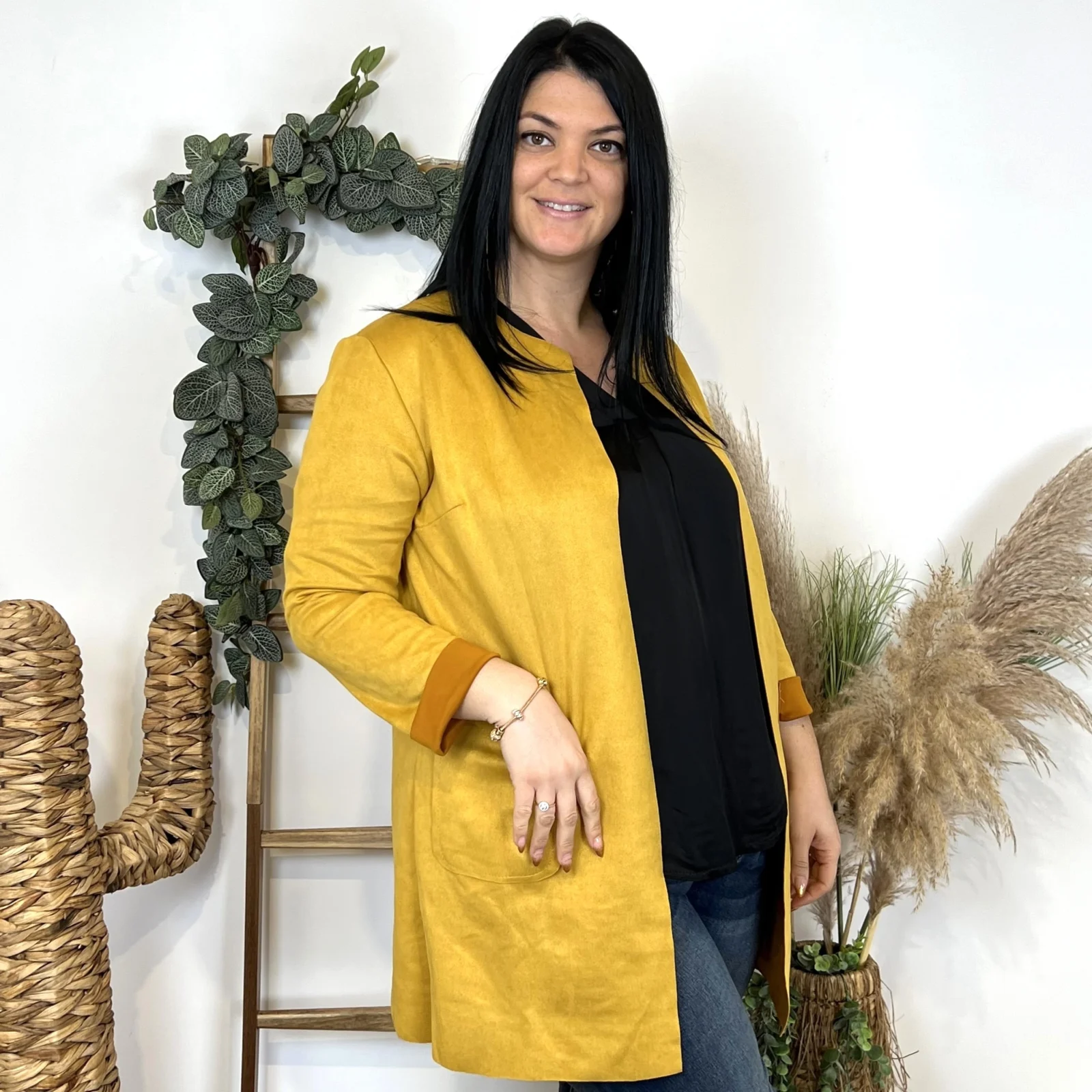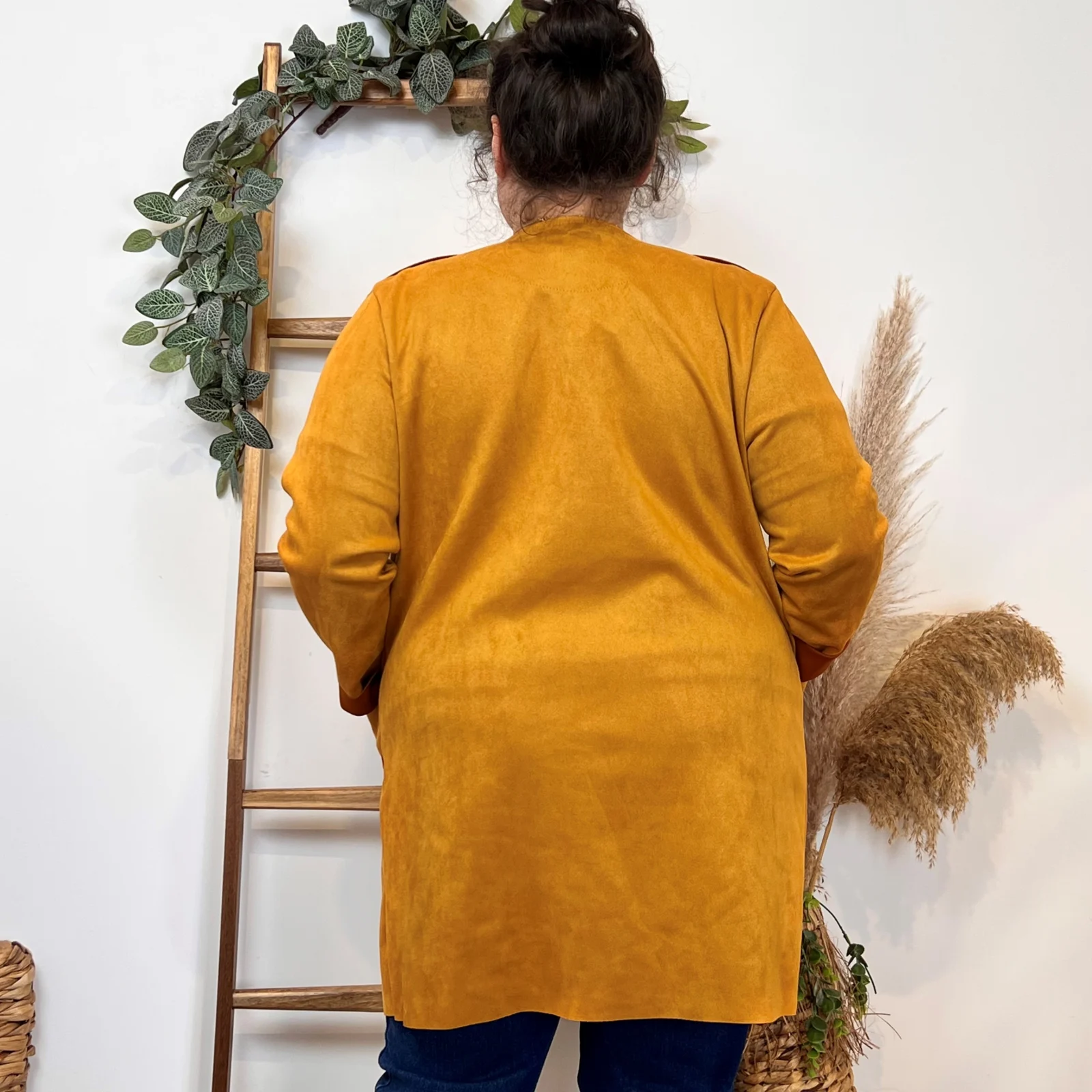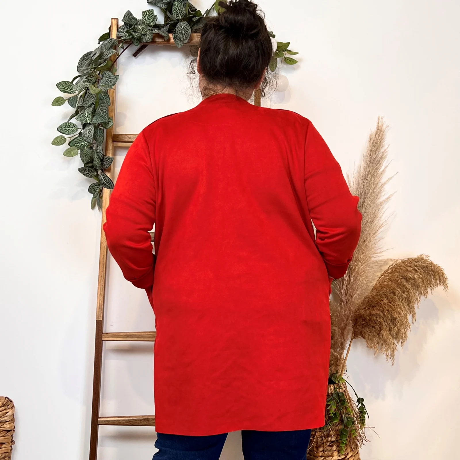 L’équipe BleuClair vous propose cette petite veste de fabrication italienne qui vous comblera en toute saison. Découvrez notre veste mi-longue en suédine pour Femme. Ici associée avec un jean Voggo et un pull leger. La pièce idéale pour cette sain afin d’apporter une petite touche chic à votre tenue.