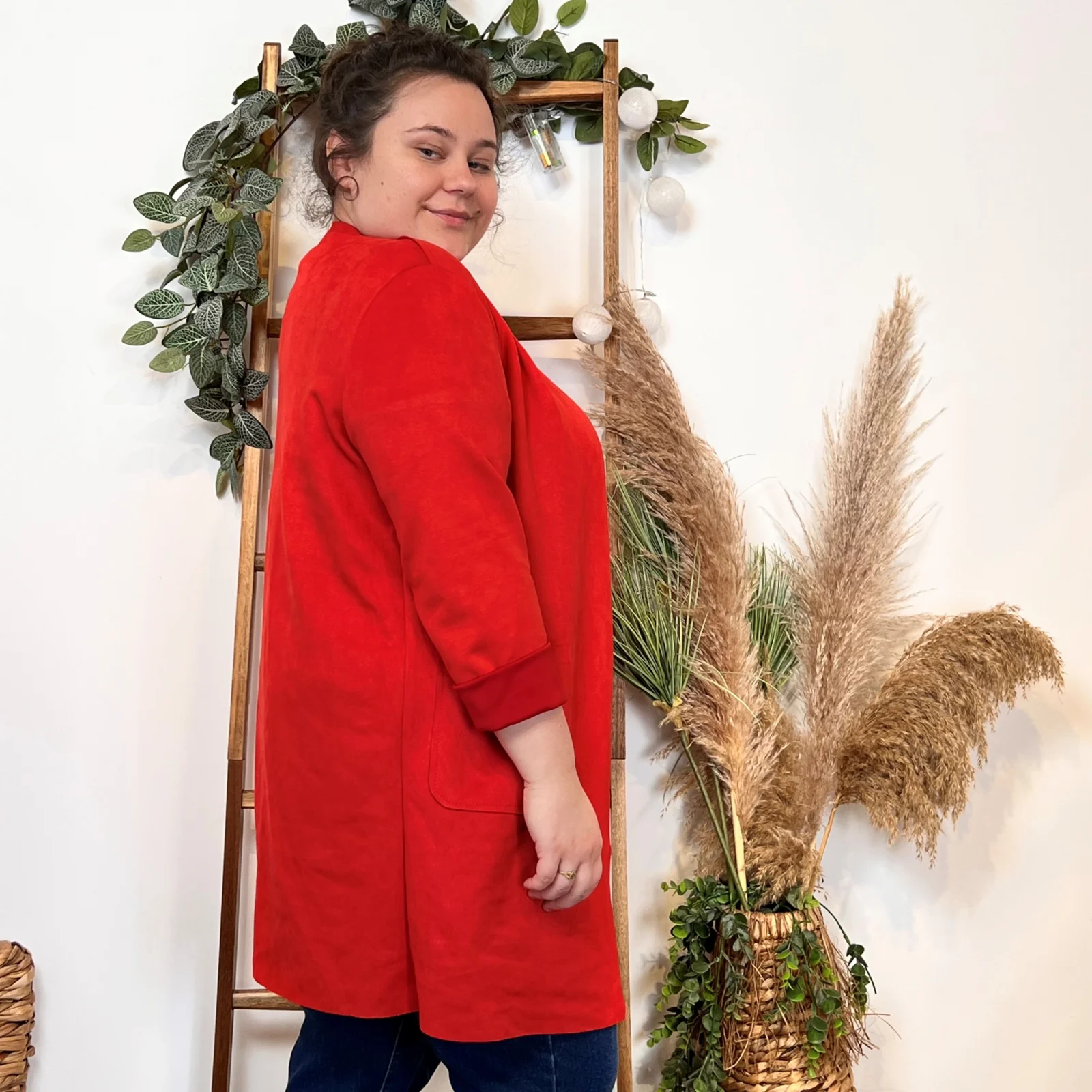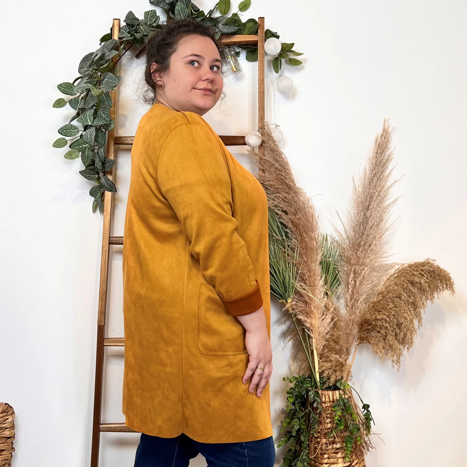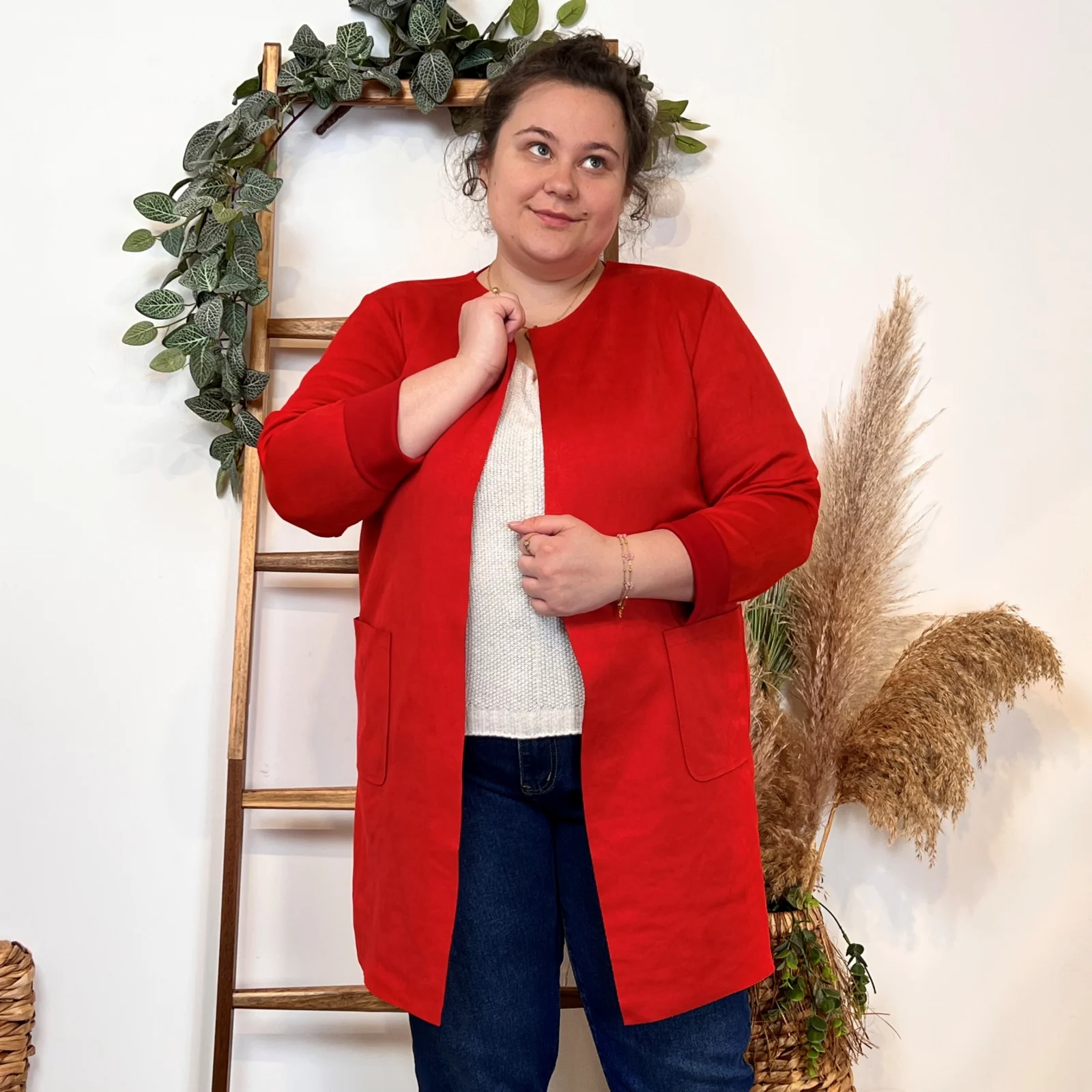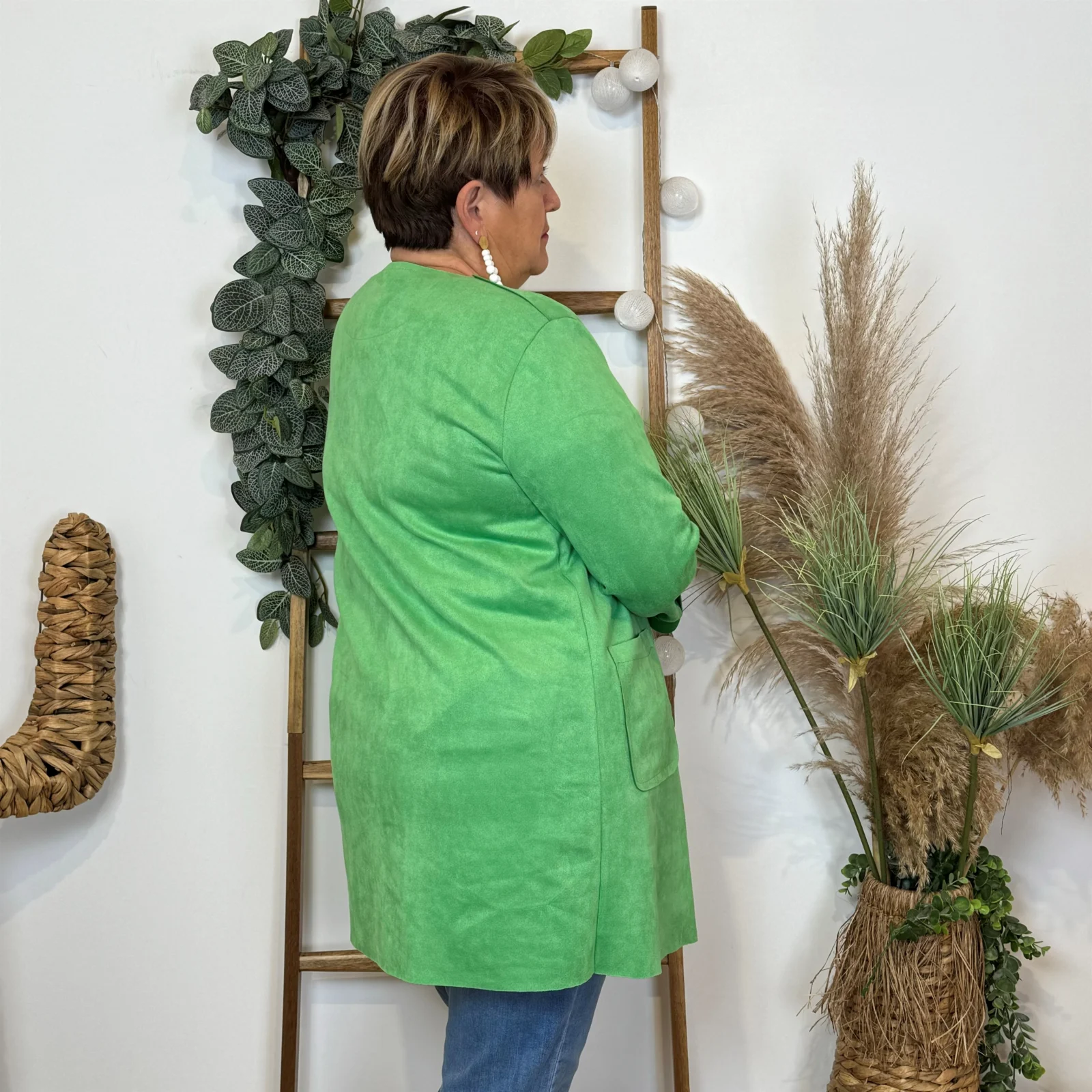 L’équipe BleuClair vous propose cette petite veste de fabrication italienne qui vous comblera en toute saison. Découvrez notre veste mi-longue en suédine pour Femme. Ici associée avec un jean Voggo et un pull leger. La pièce idéale pour cette sain afin d’apporter une petite touche chic à votre tenue.