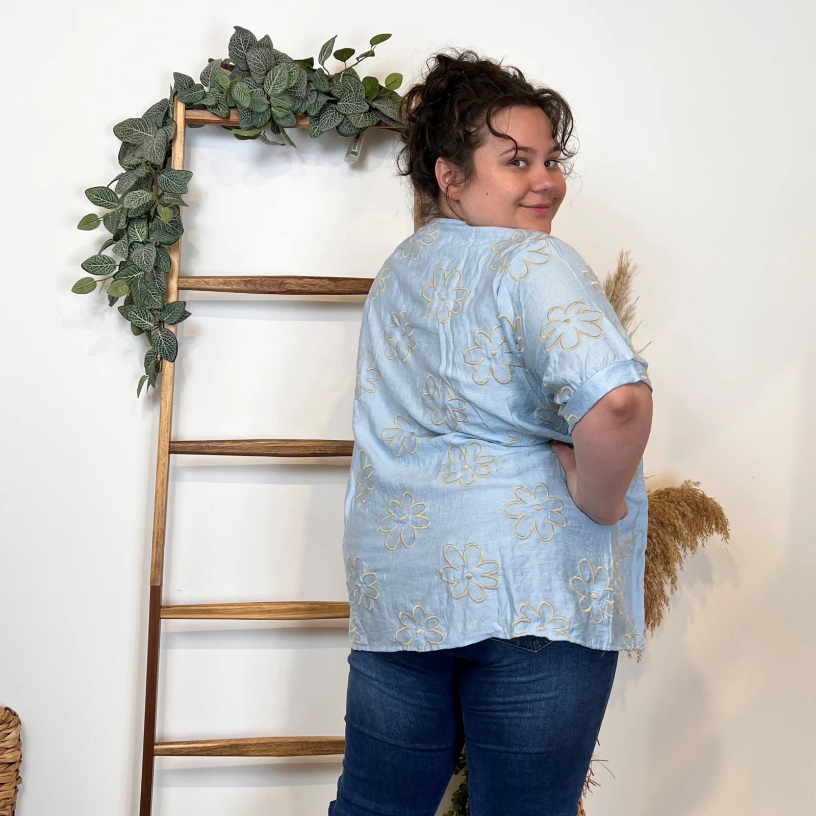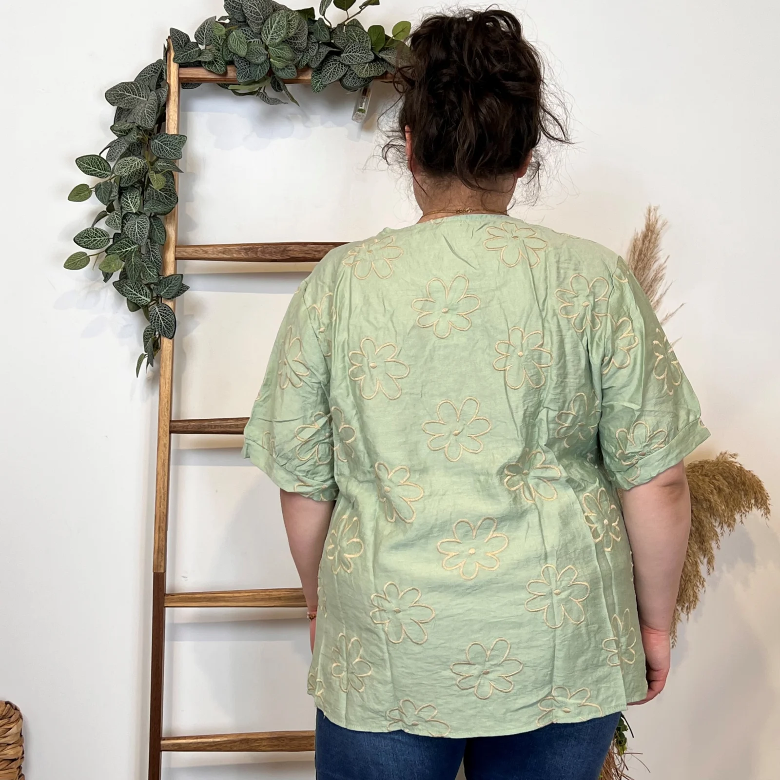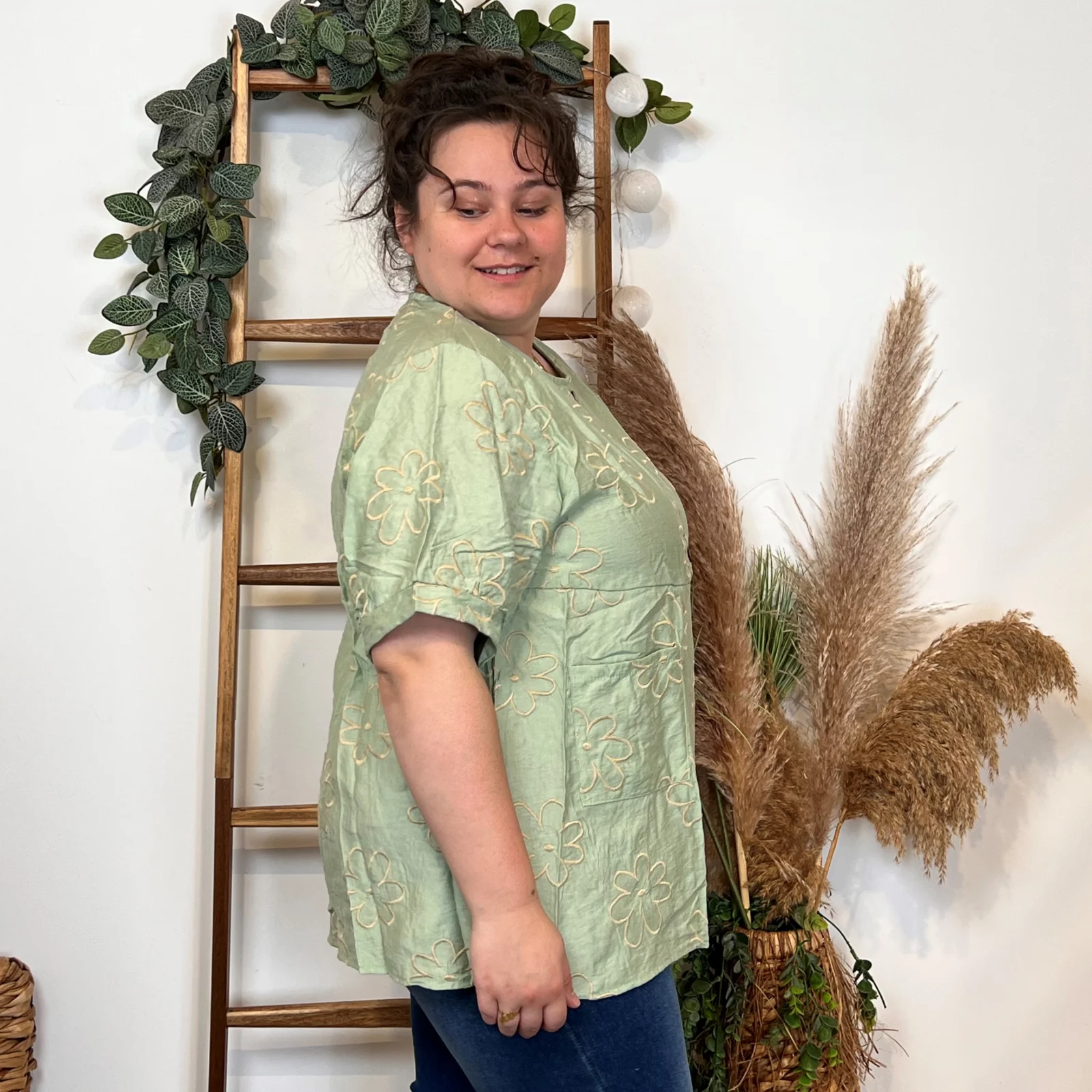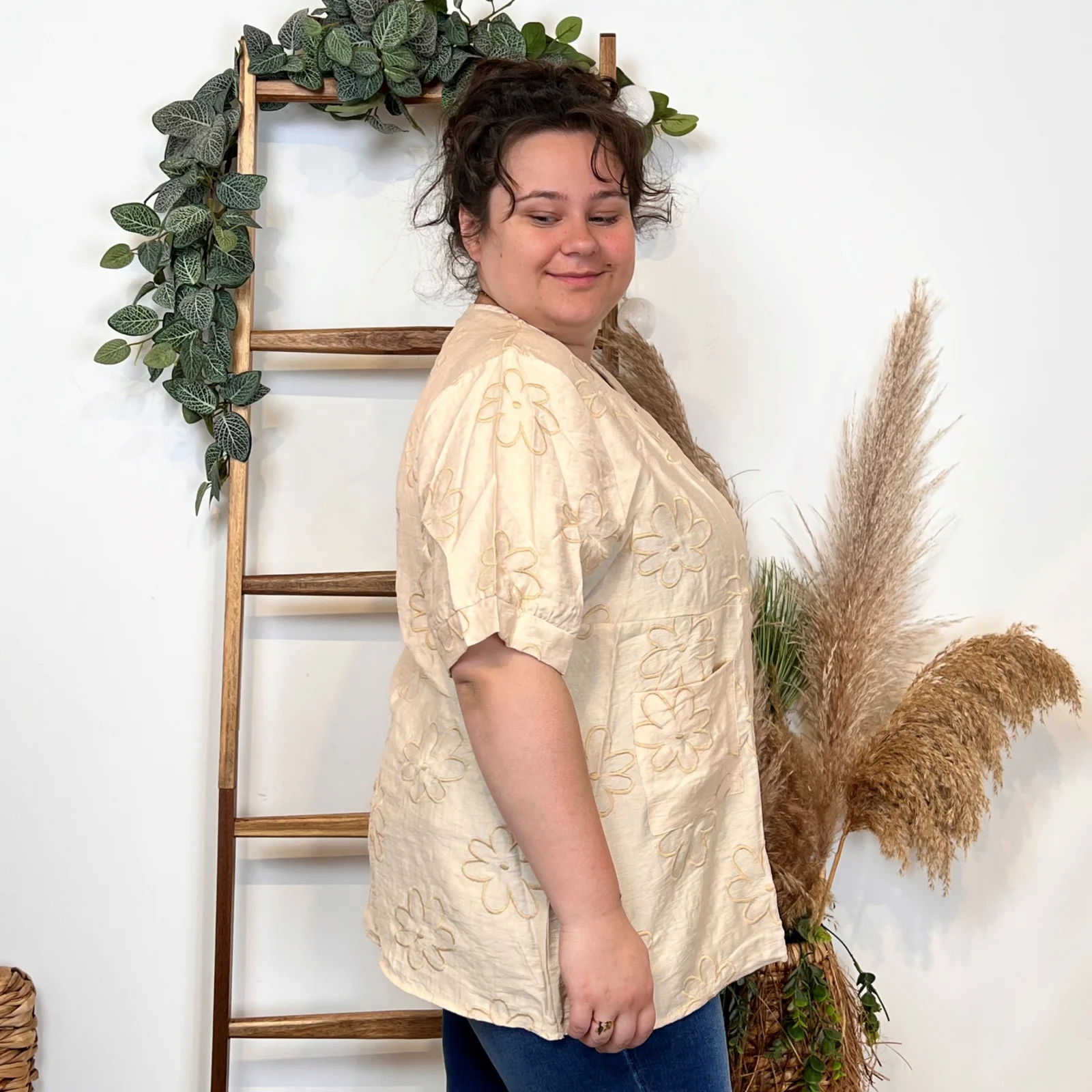 Une blouse signée Christy qui se porte facilement en cette saison. Blouse fluide imprimée “Jolies Formes”