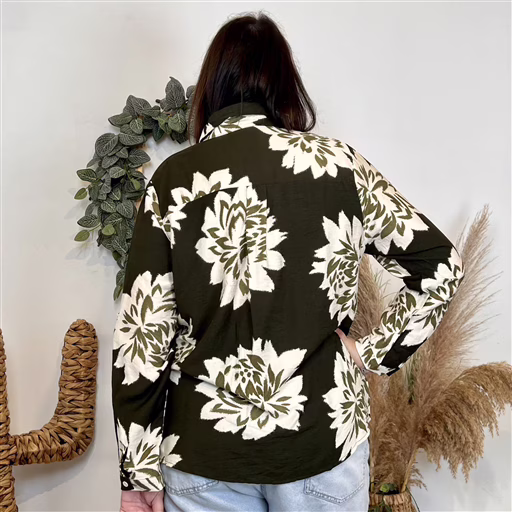 Chemise à l’imprimé automnal signée By One boutonnée de haut en bas. Boutons cachés par une bande de tissus. On adore les imprimés, ses couleurs et son style dans l’air du temps. Col chemisier, poignet boutonné. Pour toutes celles qui veulent être tendance sans jamais être standard. A associer avec un Jean Melly and Co ou un modèle de jean Voggo, nous vous conseillons afin de finir votre look, nos nombreux accessoires.