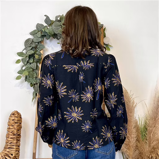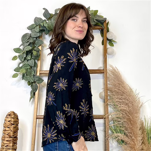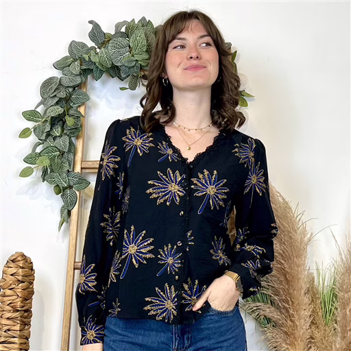 Ce chemisier brodé séduit par son mélange parfait entre élégance et authenticité.