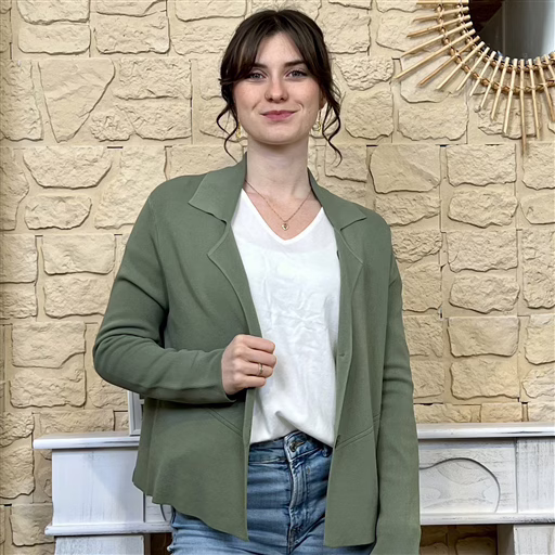Allie style et confort avec cette veste blazer en maille souple. Sa coupe structurée et son tissu extensible offrent une allure chic sans compromis sur le confort. Parfaite pour compléter une tenue casual avec un jean et un t-shirt, ou pour apporter une touche sophistiquée à un look plus habillé.