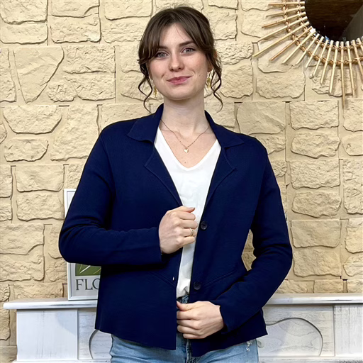 Allie style et confort avec cette veste blazer en maille souple. Sa coupe structurée et son tissu extensible offrent une allure chic sans compromis sur le confort. Parfaite pour compléter une tenue casual avec un jean et un t-shirt, ou pour apporter une touche sophistiquée à un look plus habillé.