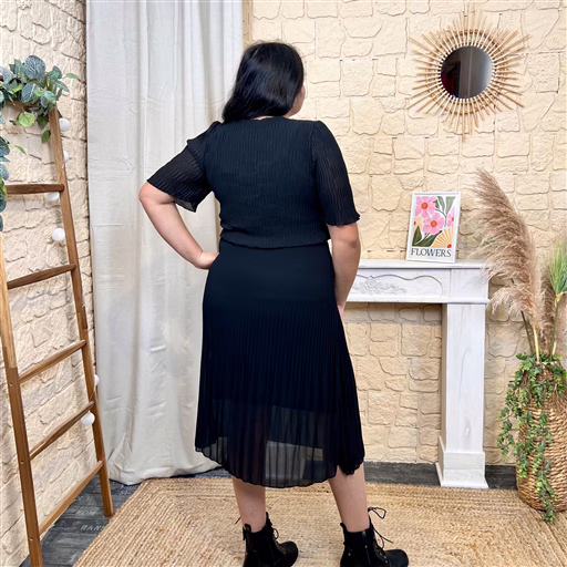 I840 – Robe longue plissée (TU) (noir)