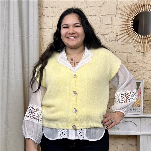 Porté sur une chemise blanche ou une blouse fluide, il crée un look féminin et lumineux.
