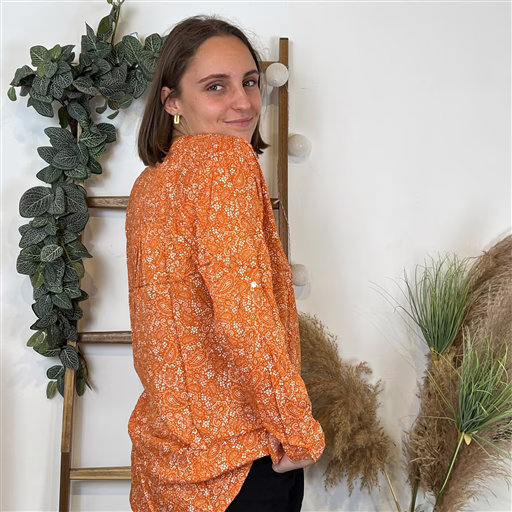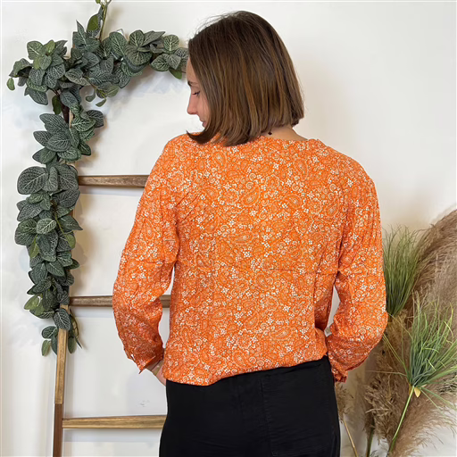 I930- Blouse Melya, imprimé cachemire (T36-T46) (orange)