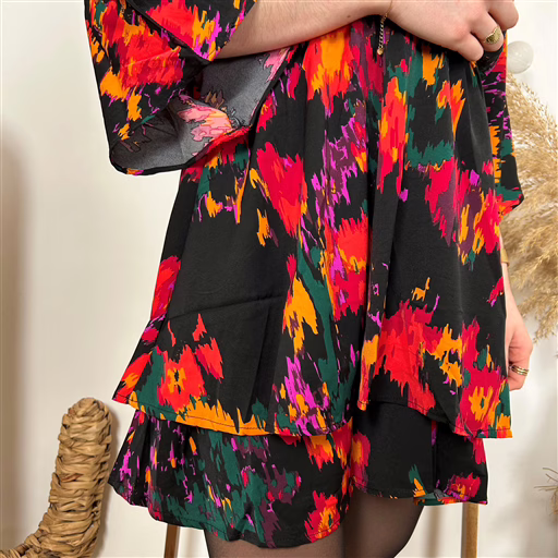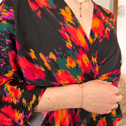 A la recherche de la robe courte idéale? Pensez à cette création elle a tout pour plaire ! Cette robe au décolleté croisé, a un joli col V et surtout de jolies manches trapèze. Cintrée et structurante au niveau de la taille. Longueur à mi-cuisse. Choisissez votre taille habituelle. Facile à associer avec un petit sac et de jolis collants.