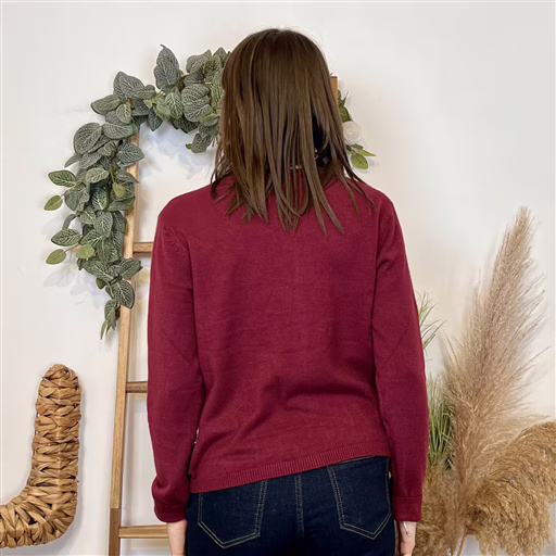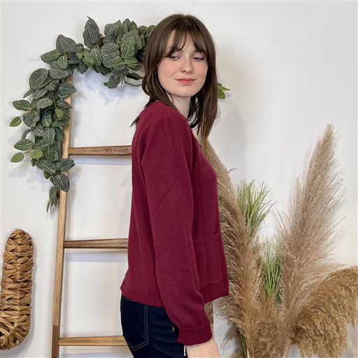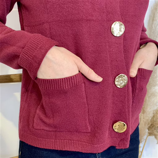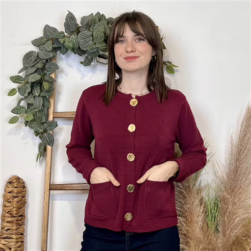 J950 – Gilet manches longues à boutons (TU) (bordeaux)