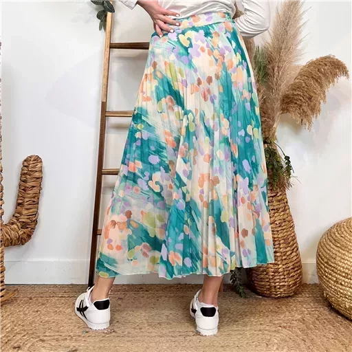 Réalisée dans une matière aérienne et légère, qui insuffle un esprit féminin, cette jupe au plissé permanent avec sa ligne évasée vous offrira une démarche avec élégance.