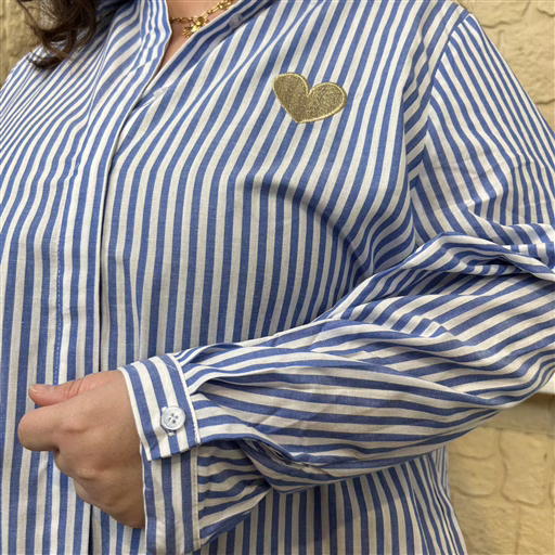 Chemise rayée rehaussée d’un cœur brodé. Sa matière légère et sa coupe confortable en font une pièce agréable à porter au quotidien. Déclinée en plusieurs coloris frais et lumineux, elle s’associe facilement à un jean ou un pantalon pour un look à la fois chic et décontracté. Un indispensable du dressing, à porter en toute saison.