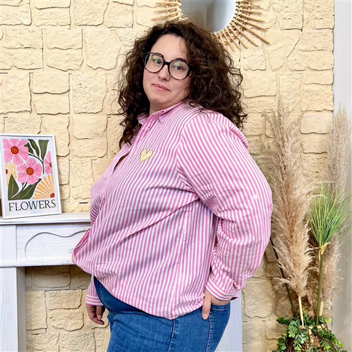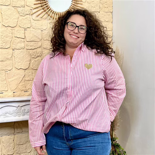 Chemise rayée rehaussée d’un cœur brodé. Sa matière légère et sa coupe confortable en font une pièce agréable à porter au quotidien. Déclinée en plusieurs coloris frais et lumineux, elle s’associe facilement à un jean ou un pantalon pour un look à la fois chic et décontracté. Un indispensable du dressing, à porter en toute saison.
