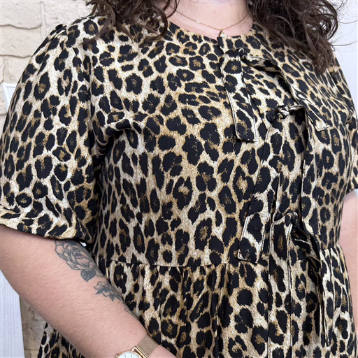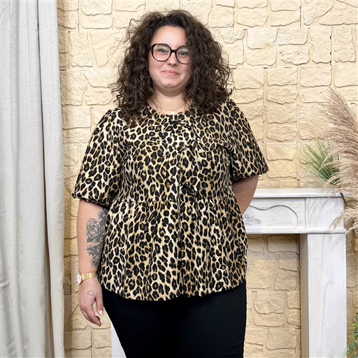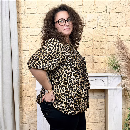 Blouse fluide à l’imprimé léopard intemporel, idéale pour apporter du caractère à vos tenues. Sa coupe évasée, son col légèrement boutonné avec lien et ses manches courtes offrent confort et féminité. Parfaite avec un jean ou un pantalon noir pour un look chic et moderne.