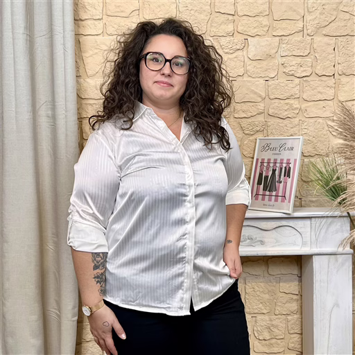 Cette chemise satinée séduit par son tissu subtilement brillant. Elle est rehaussée de fines rayures, apportant une touche chic et raffinée.