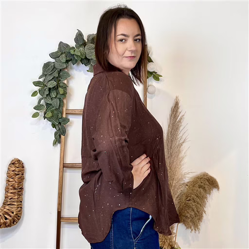 K950 – Chemise pailletée (T44-T52) (marron)