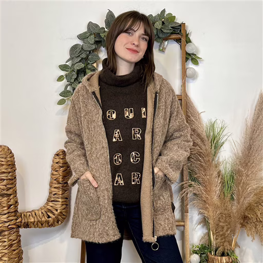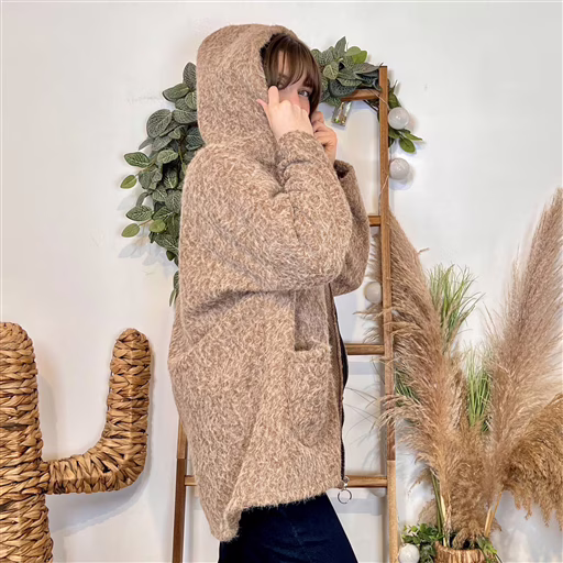 Découvrez ce manteau cocooning au style casual chic, parfait pour affronter la saison avec douceur. Sa matière effet laine/feutrée, moelleuse et chaude, donne tout de suite une allure cosy et réconfortante. On adore sa couleur écru lumineuse qui s’accorde facilement avec toute la garde-robe. Sa coupe droite et légèrement oversize assure un tombé fluide et confortable. La capuche ajoute une note décontractée et pratique pour les jours frais, tandis que la fermeture zippée permet de le porter ouvert ou fermé selon vos envies. Les grandes poches plaquées à l’avant renforcent son côté pratique et accentuent le look détente sophistiqué.
