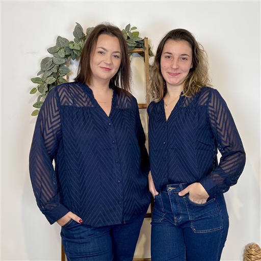 Blouse confectionnée dans un voile léger subtilement texturé par un motif chevrons ton sur ton. Elle offre un joli jeu de transparence tout en restant élégante et facile à porter. Sa coupe est droite et fluide, le col chemise forme un décolleté en V discret. Les manches longues en voile se terminent par des poignets boutonnés pour une finition raffinée.