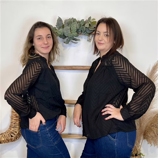 J906 – Blouse en voile motif chevrons (T42-T46) (noir)