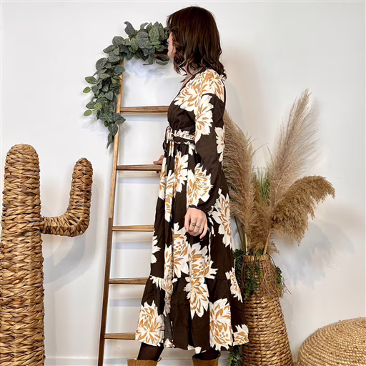 Portez-la avec des bottines camel pour un look bohème rétro, ou ajoutez une ceinture pour accentuer davantage la taille. Elle est canon avec un manteau uni et quelques bijoux dorés.
